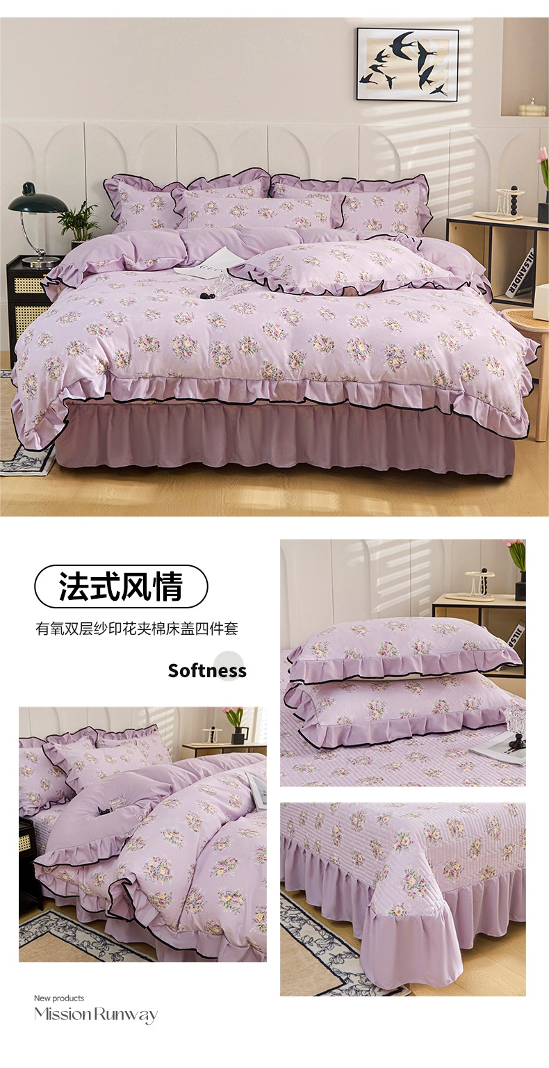 当前位置: 91家纺网 > 商品网购 > 床品套件 > 四件套 > 夏被四件套 > 梵克保罗 2025春夏新款有氧双层纱印花夹棉床盖四件套夏被四件套 小马宝丽