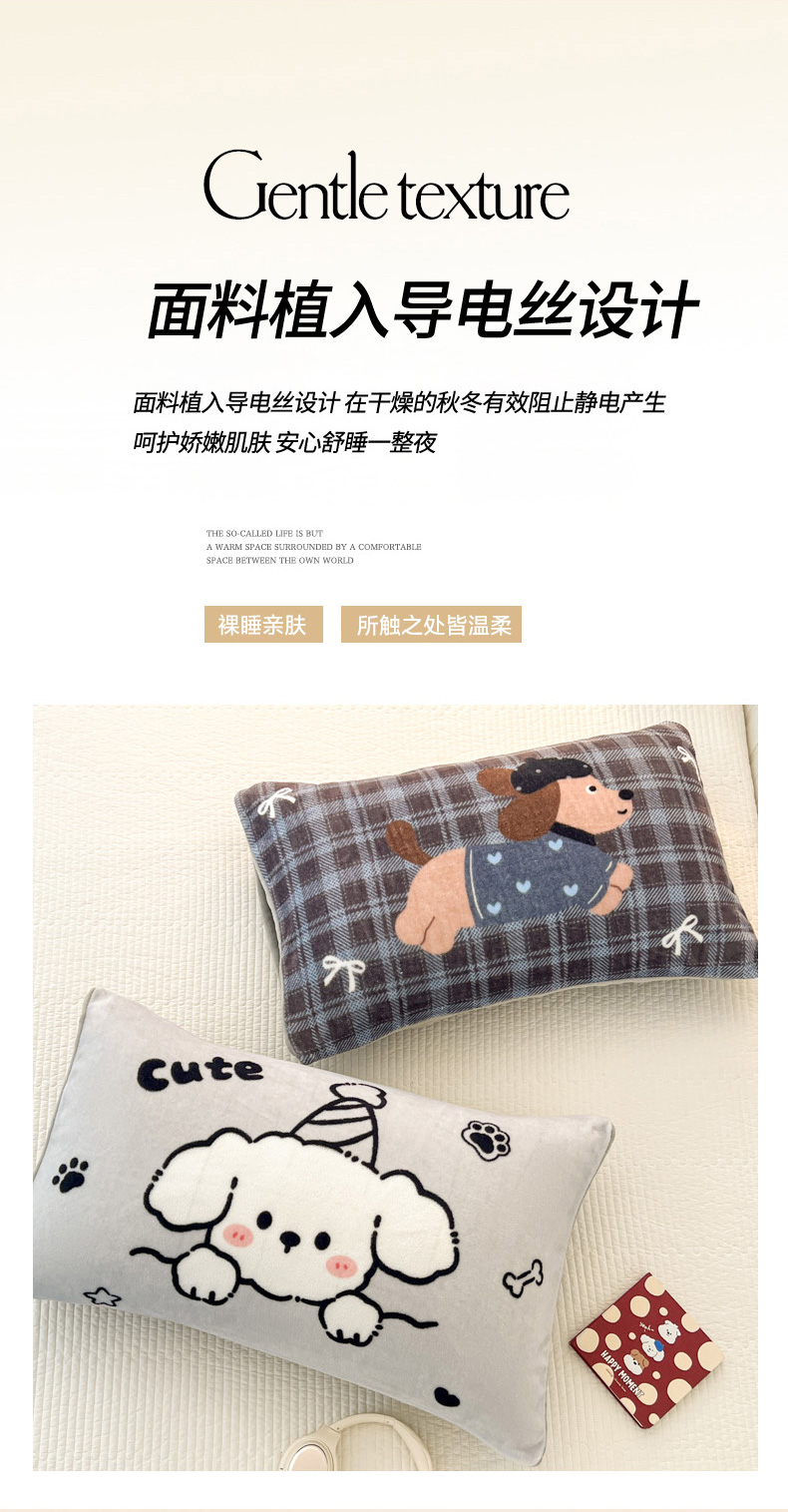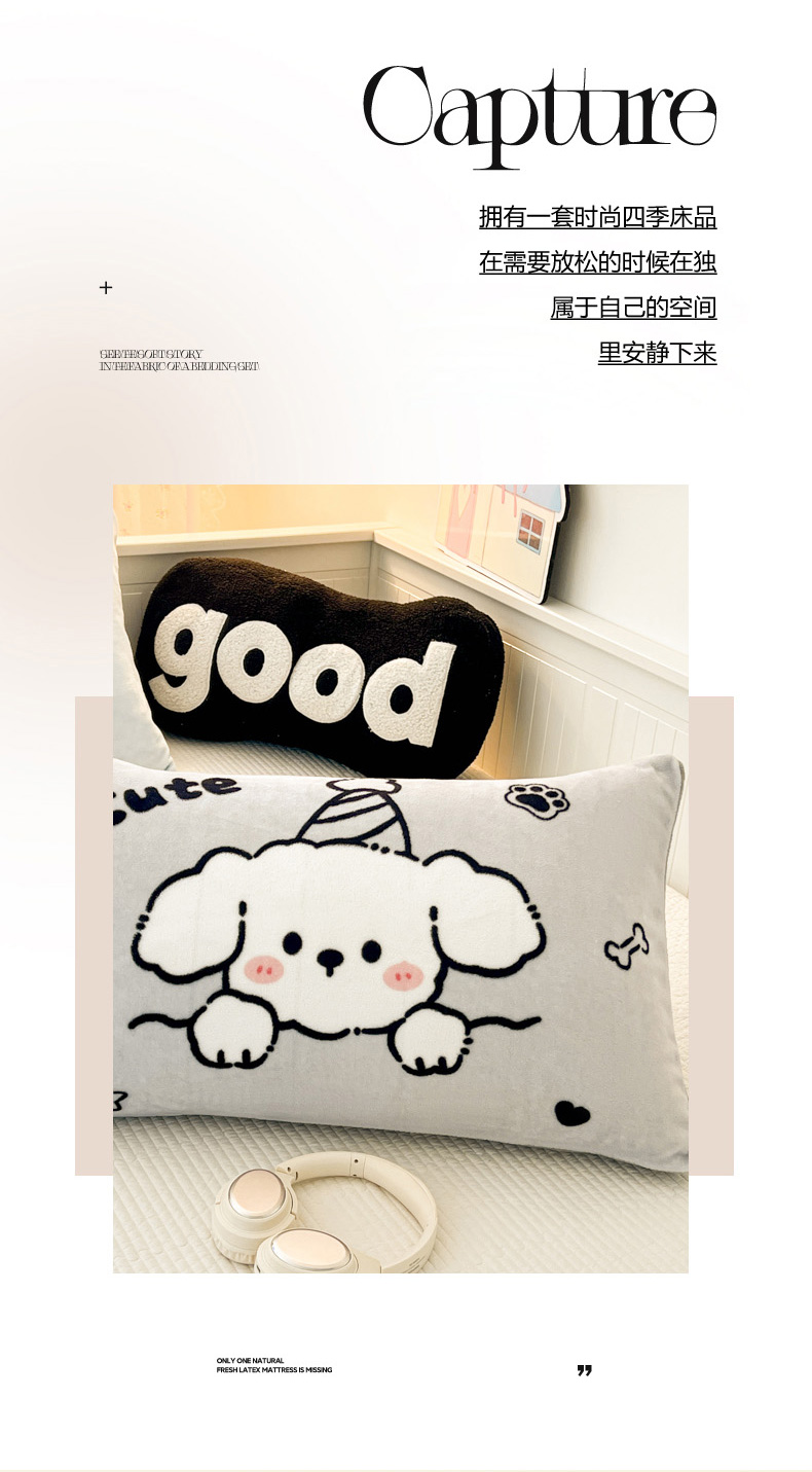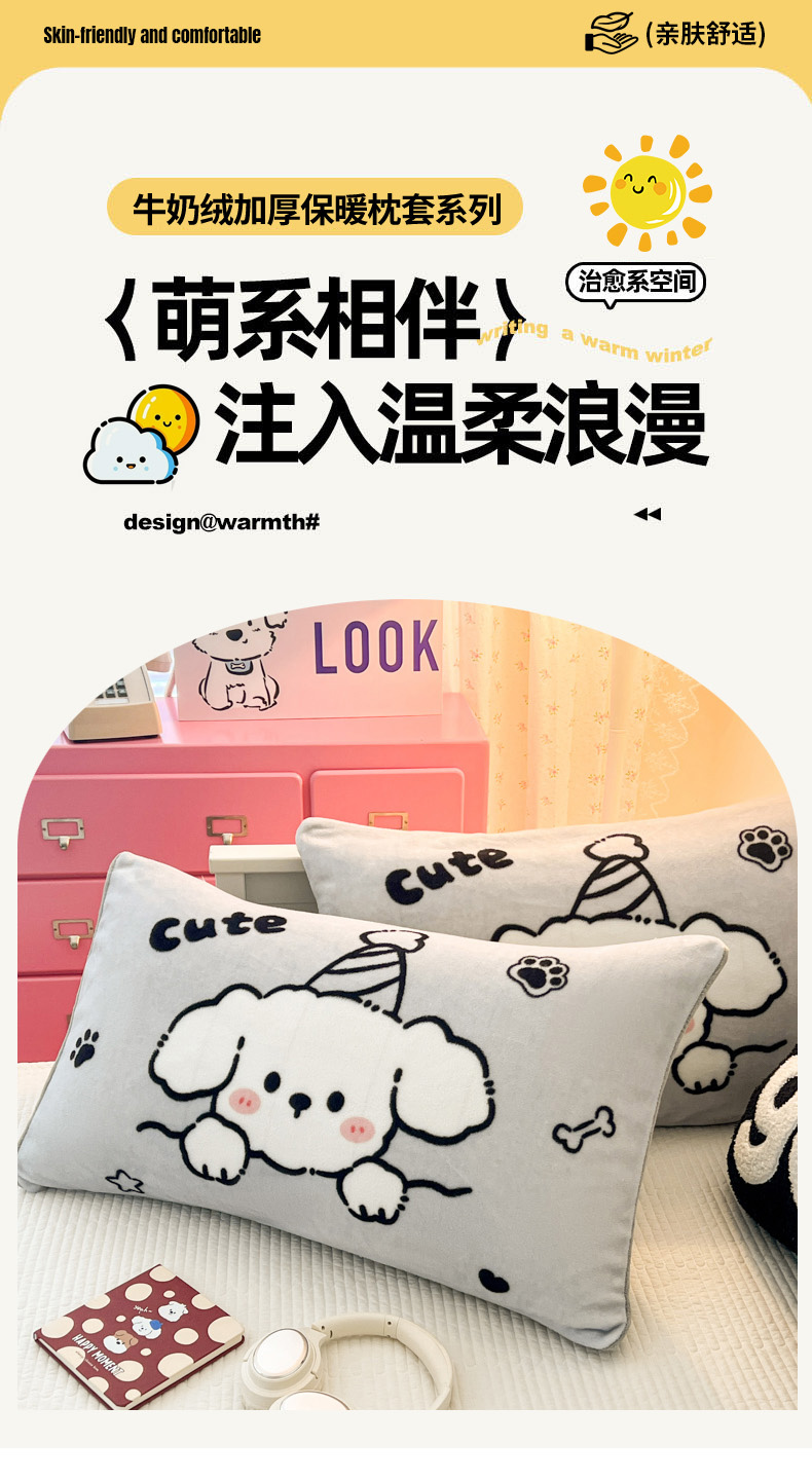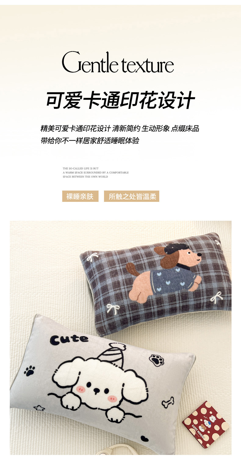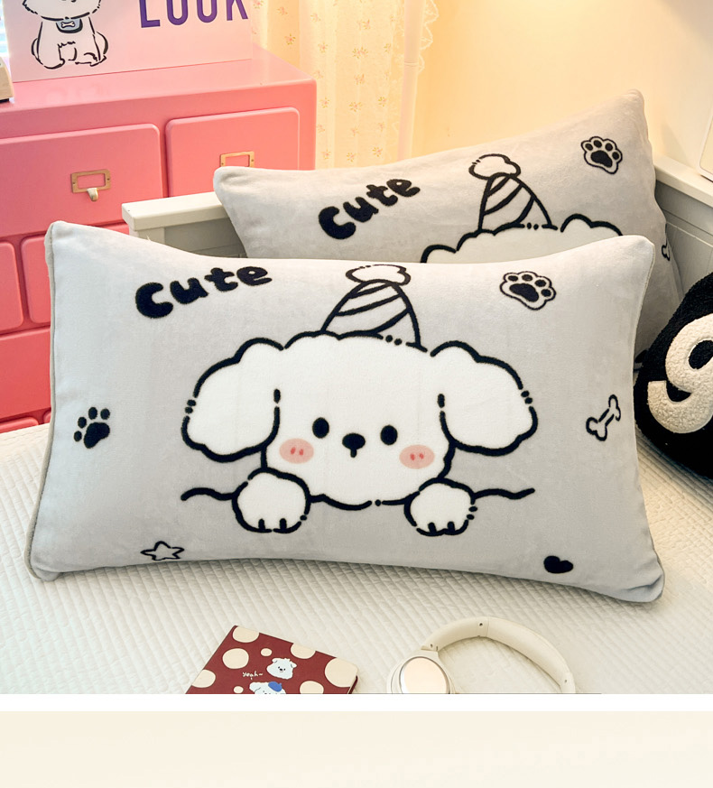 商品名称:倾慕家纺 2026新款数码大版牛奶绒单枕套 小帽狗