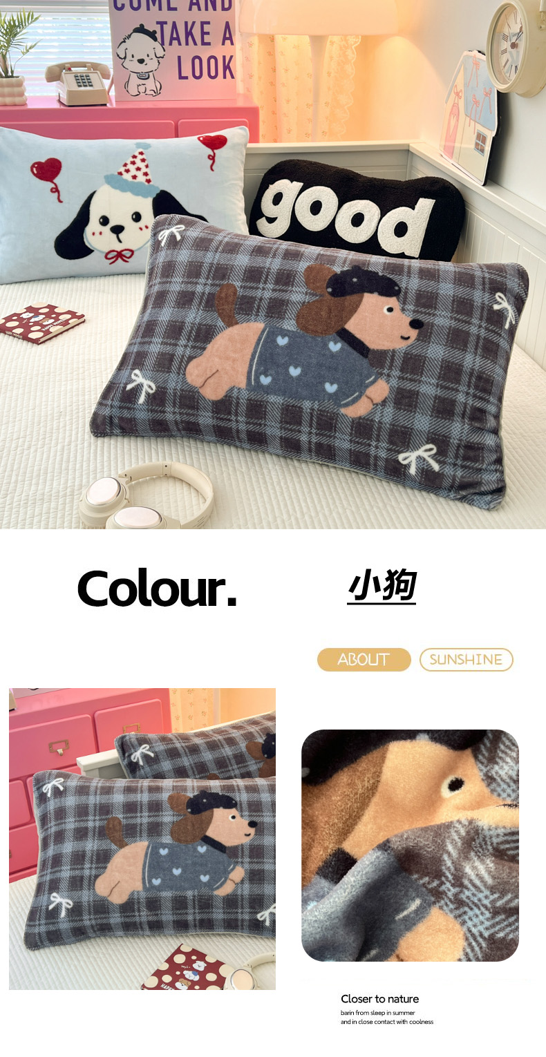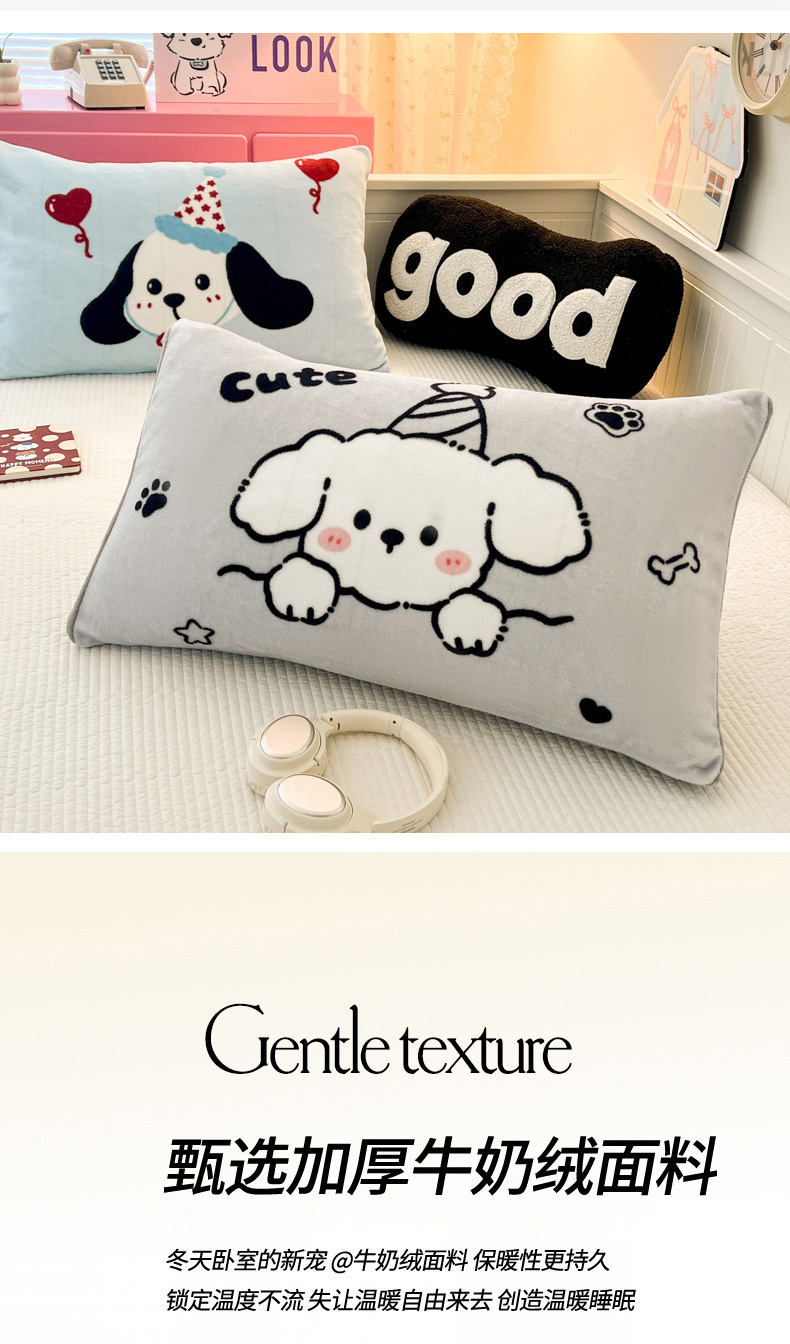 倾慕家纺 2026新款数码大版牛奶绒单枕套 小帽狗