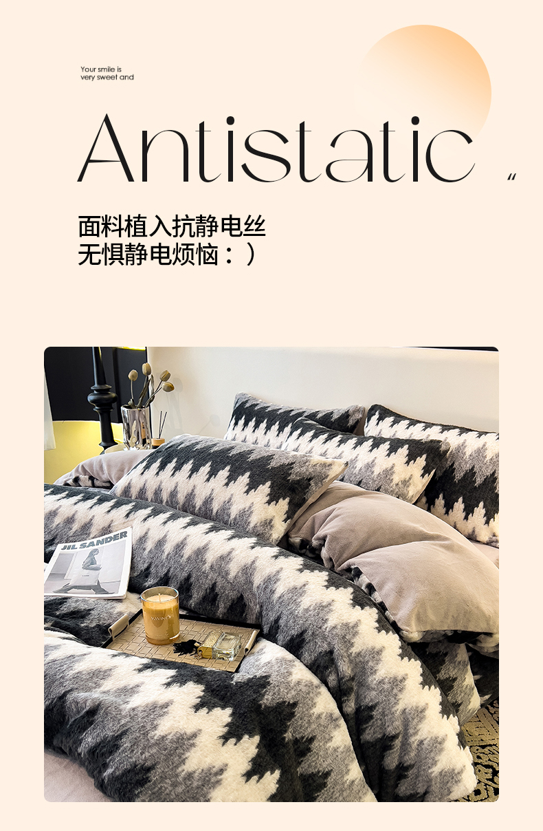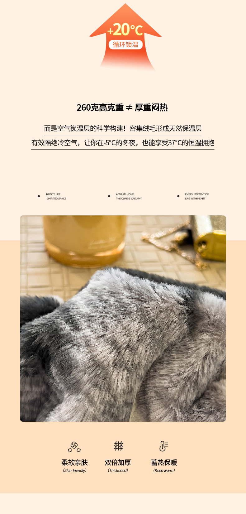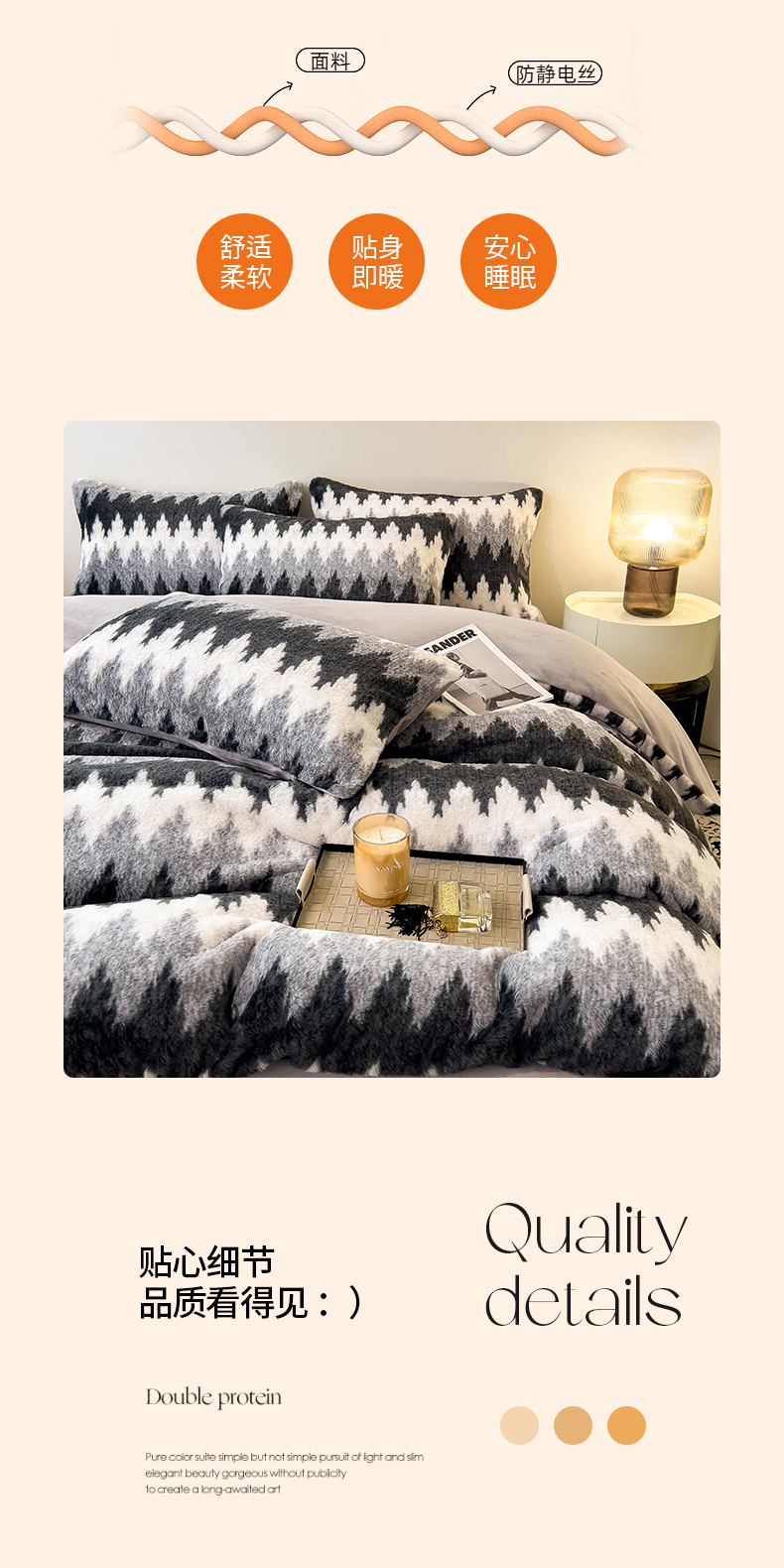 当前位置: 91家纺网 > 商品网购 > 床上用品 > 被套 > 倾慕家纺 2026新款高克重兔毛绒保暖单被套 泥点曲线灰