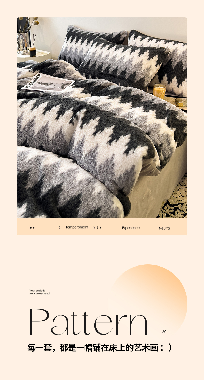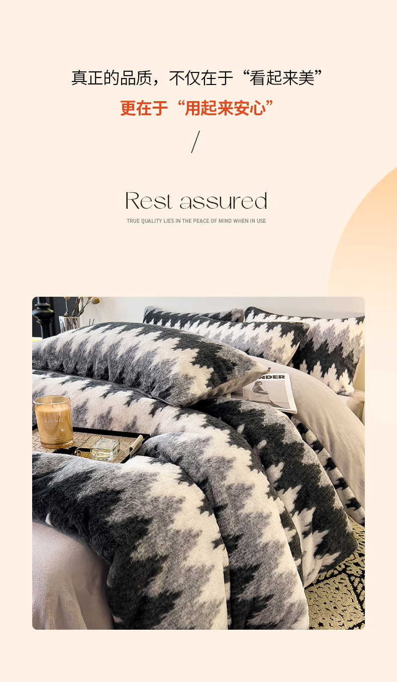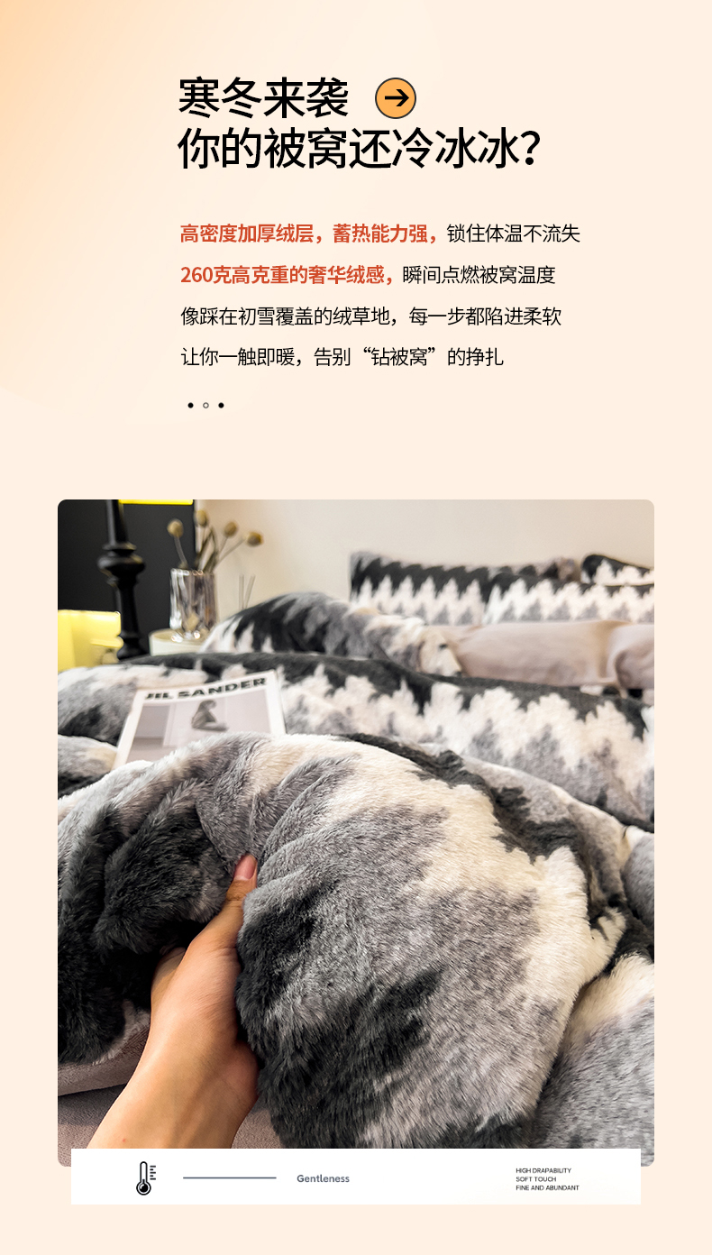 • 91家纺网 家纺一手货源 找家纺 倾慕家纺 2026新款高克重兔毛绒保暖单被套 泥点曲线灰
