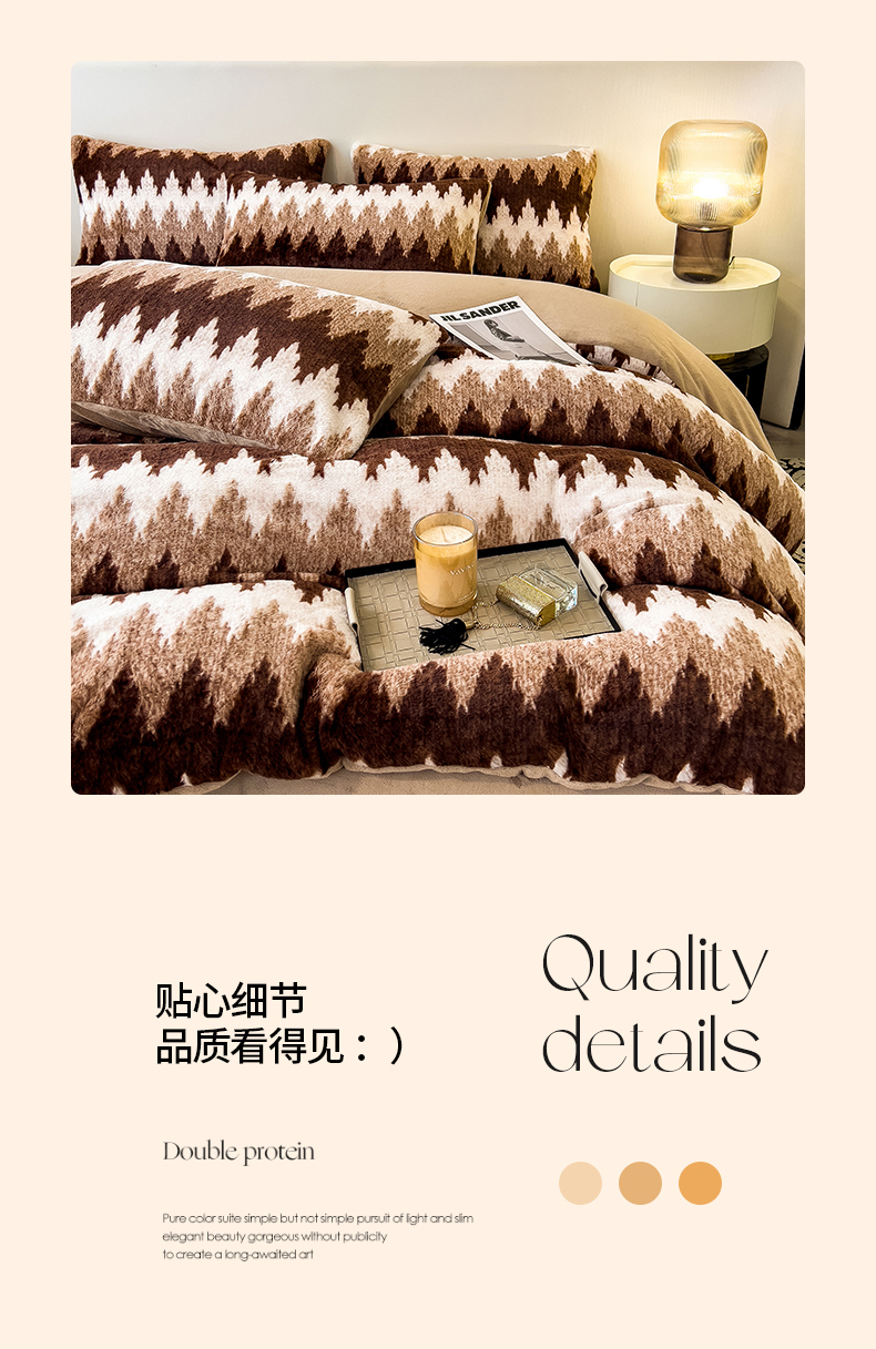 当前位置: 91家纺网 > 商品网购 > 床品套件 > 四件套 > 其它四件套 > 倾慕家纺 2026新款高克重兔毛绒保暖四件套 泥点曲线咖