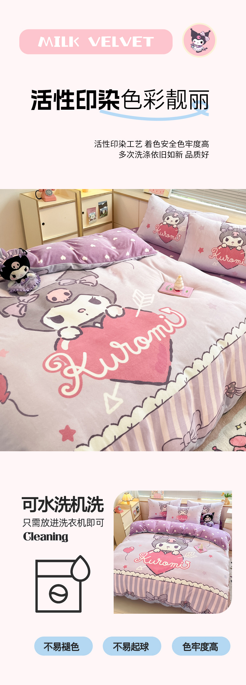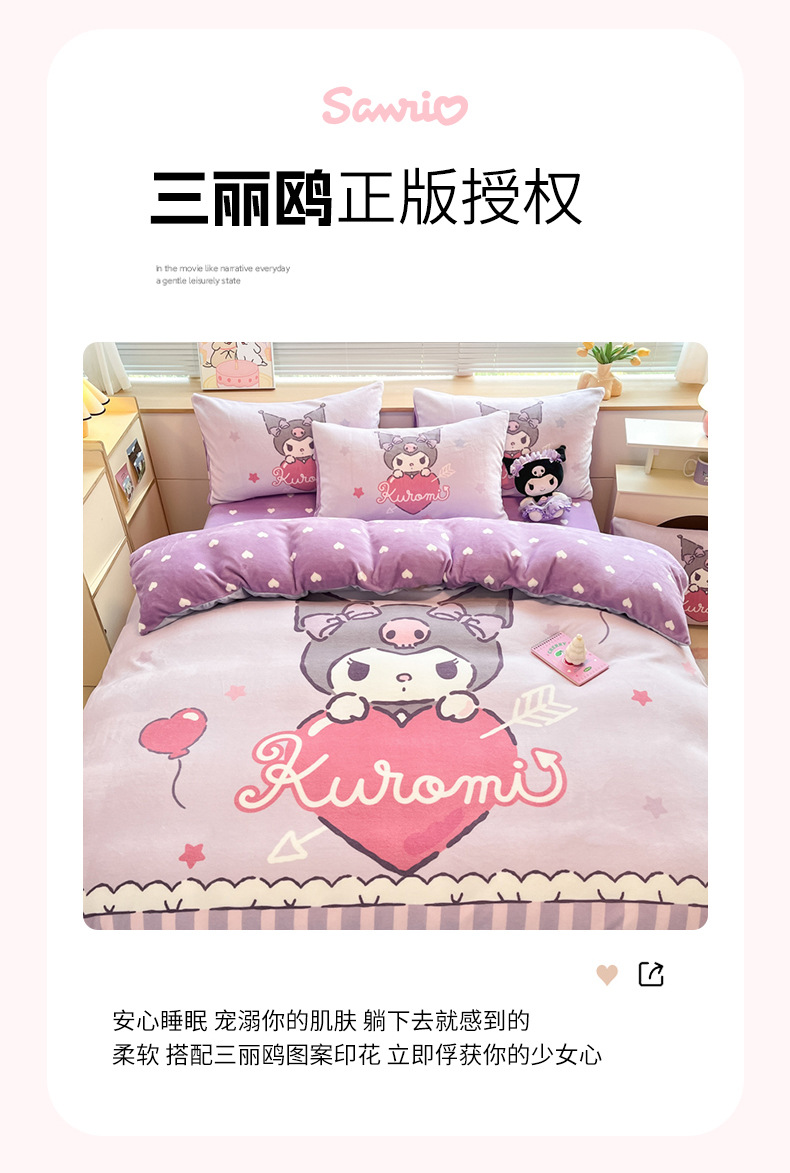当前位置: 91家纺网 > 商品网购 > 床品套件 > 四件套 > 牛奶绒四件套 > 博雅 2025新款三丽鸥正版授权高克重大版牛奶绒四件套 牛奶绒大版-甜心库洛米