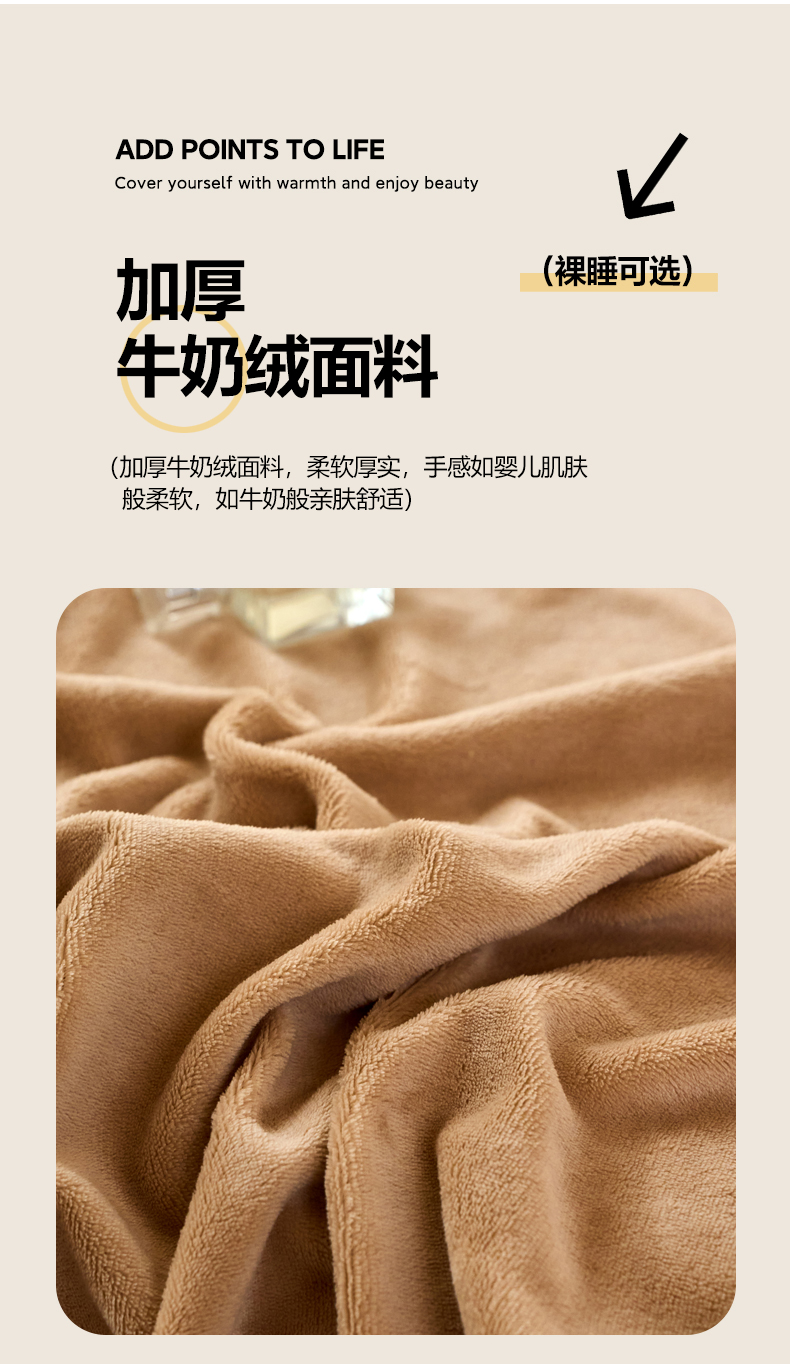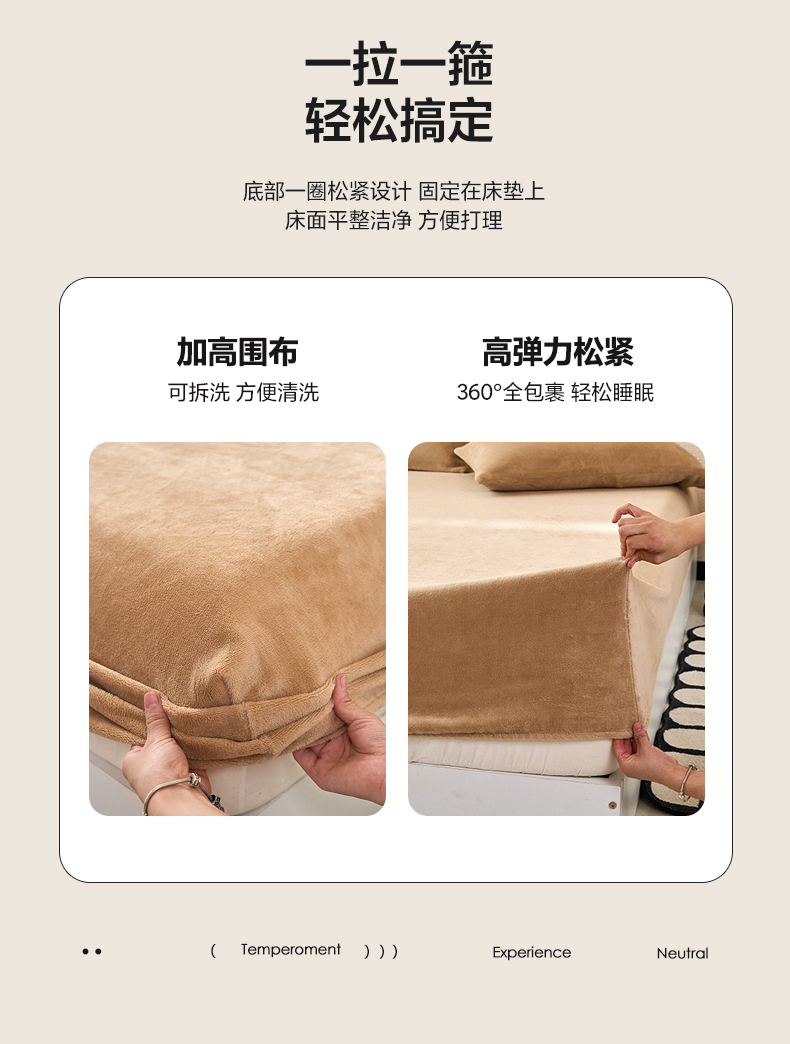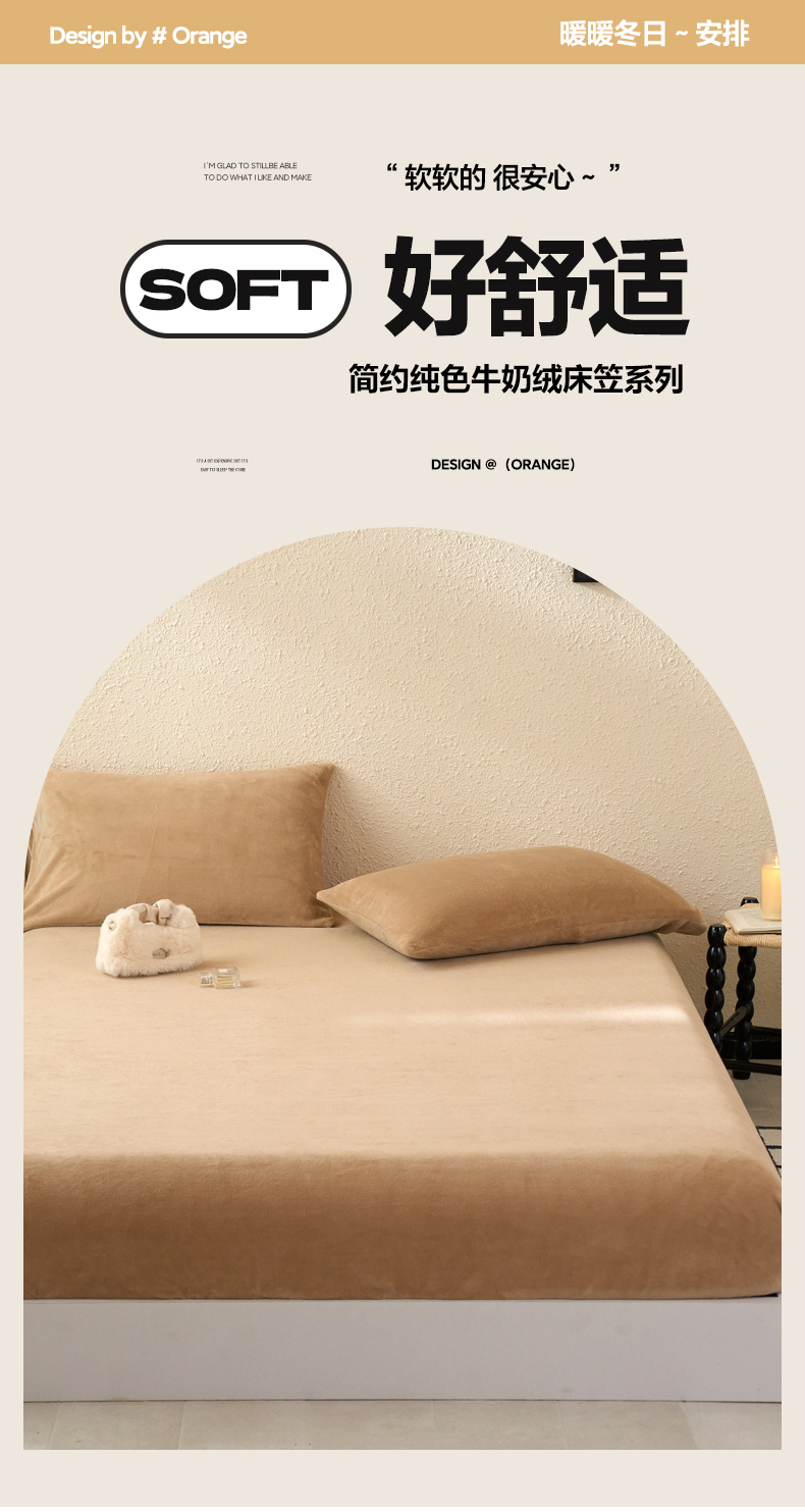 • 91家纺网 家纺一手货源 找家纺 兰紫橙家纺 2025新款简约纯色牛奶绒床笠系列 奶油驼
