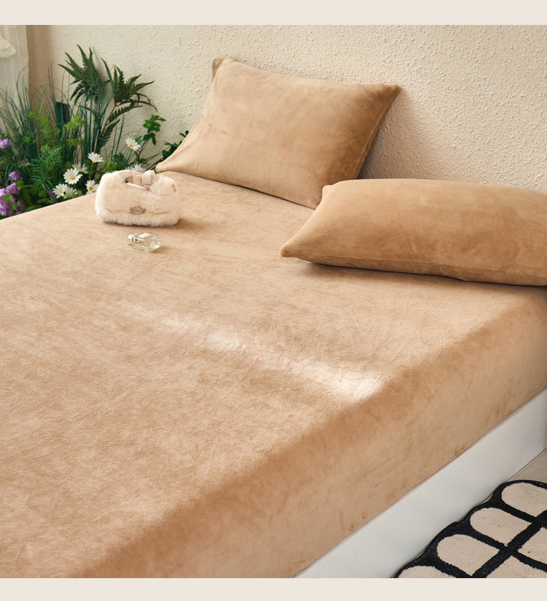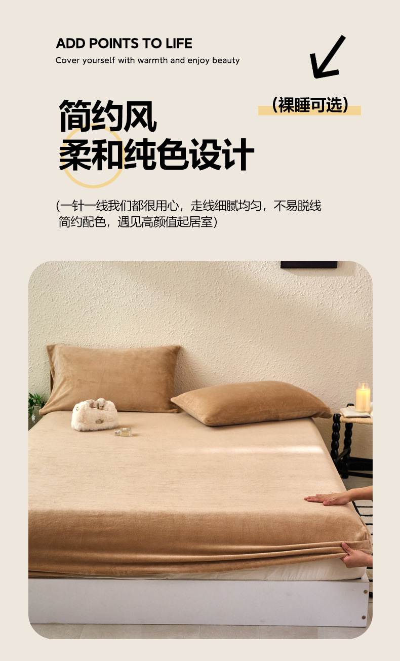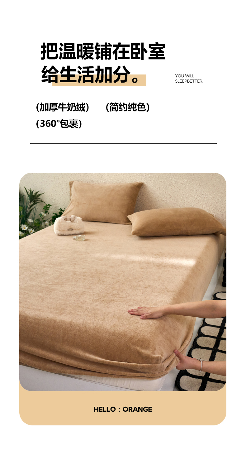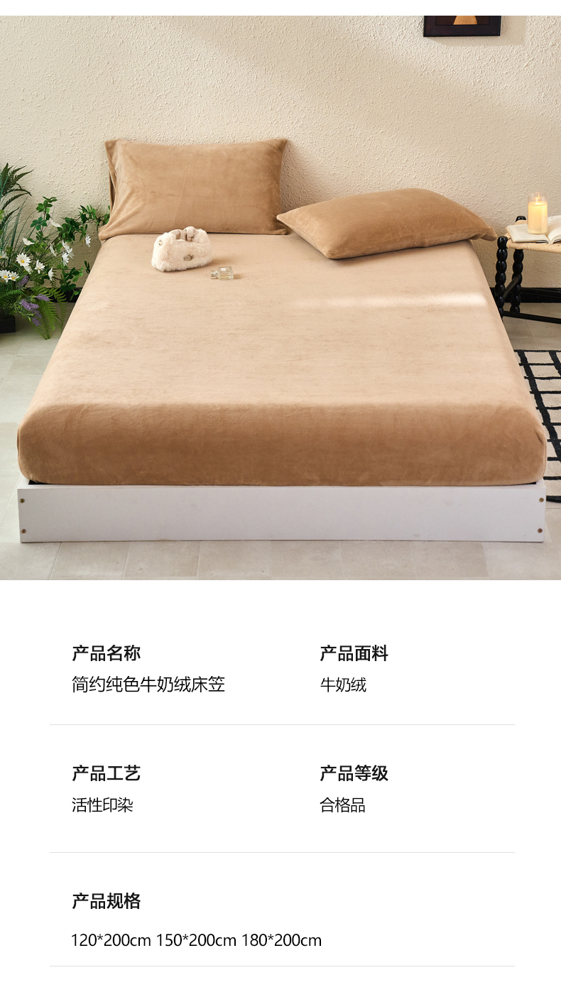 兰紫橙家纺 2025新款简约纯色牛奶绒床笠系列 奶油驼