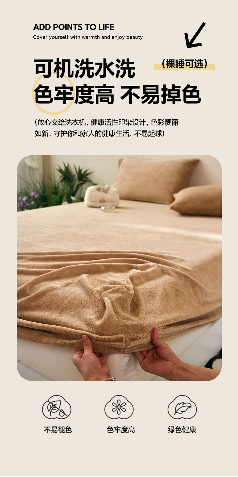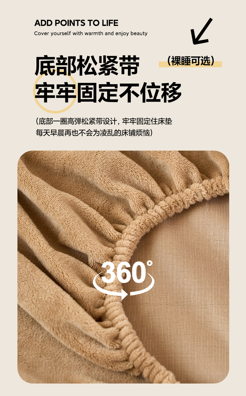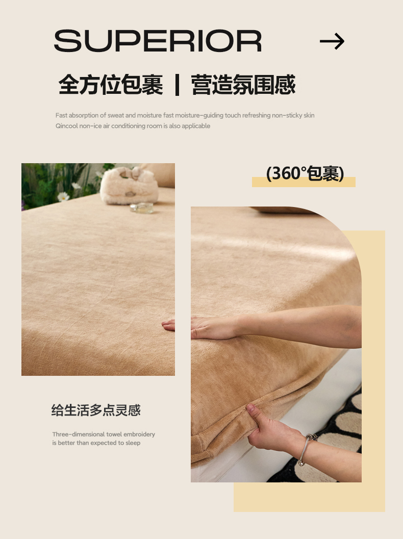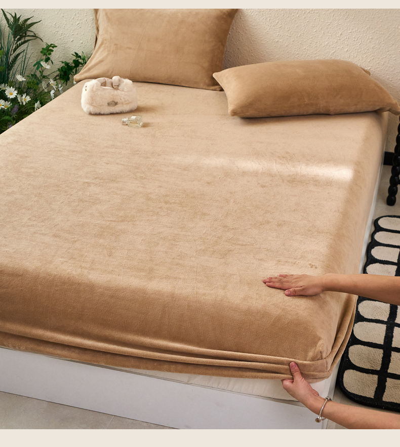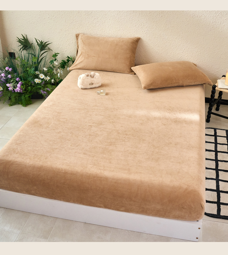 兰紫橙家纺 2025新款简约纯色牛奶绒床笠系列 奶油驼