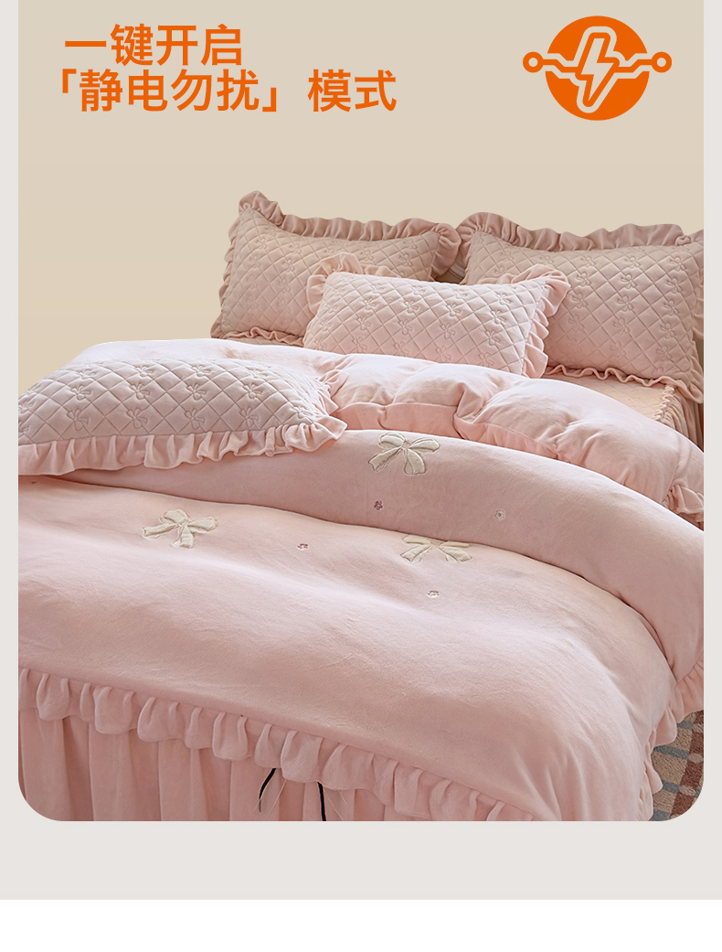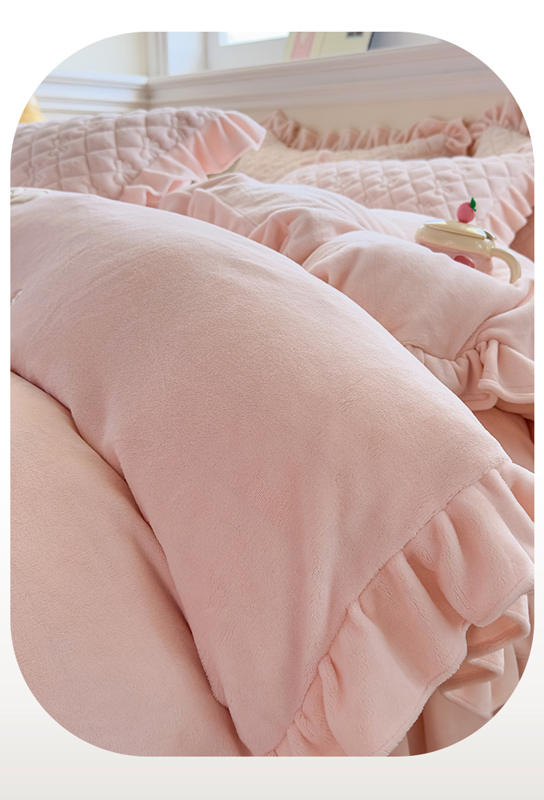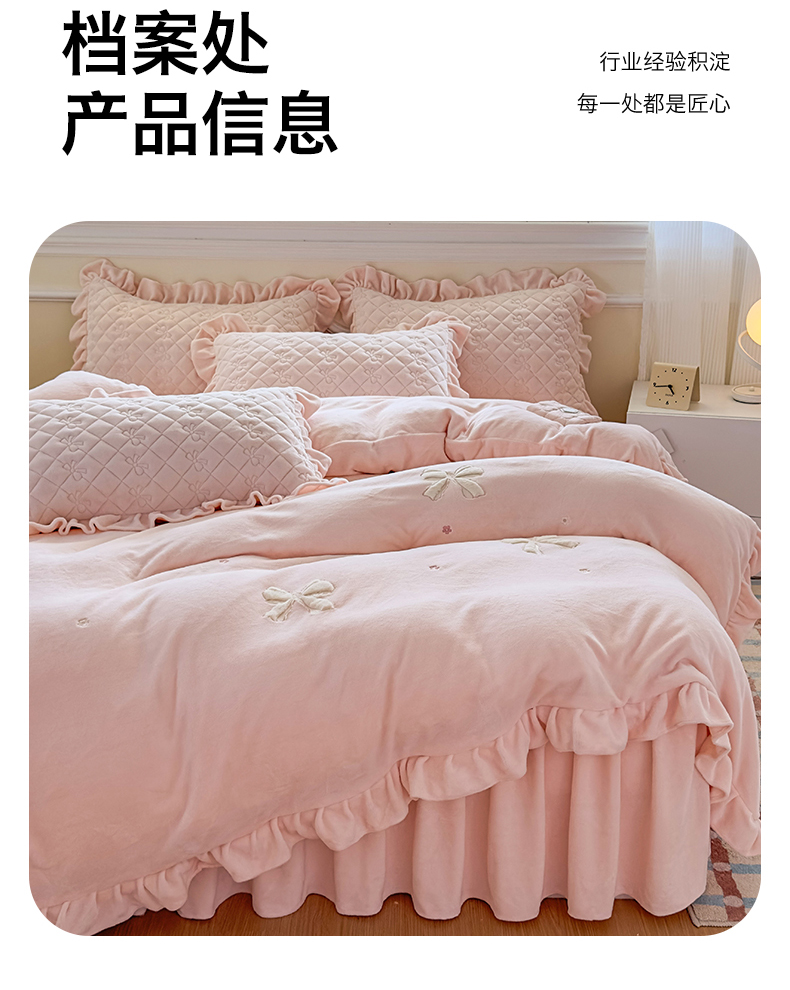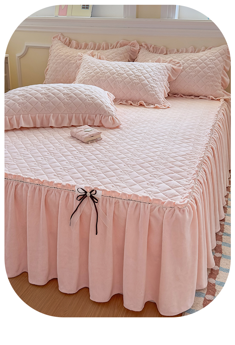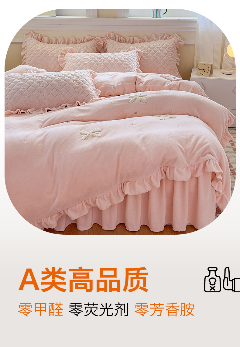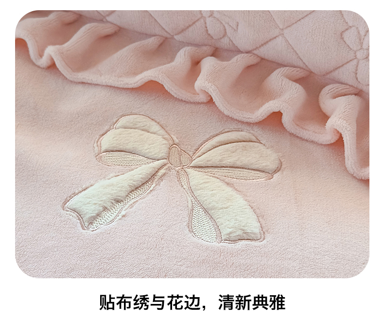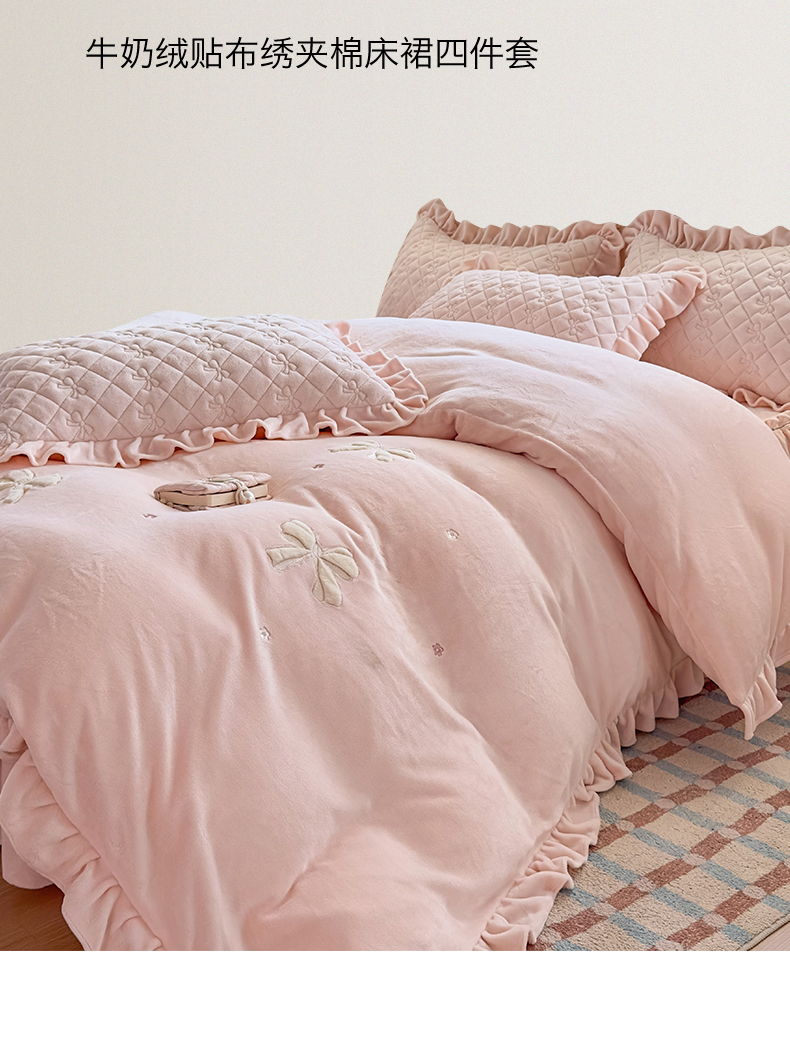 当前位置: 91家纺网 > 商品网购 > 床品套件 > 四件套 > 牛奶绒四件套 > 恒爱家纺 2025新款牛奶绒贴布绣夹棉床裙四件套 温馨粉