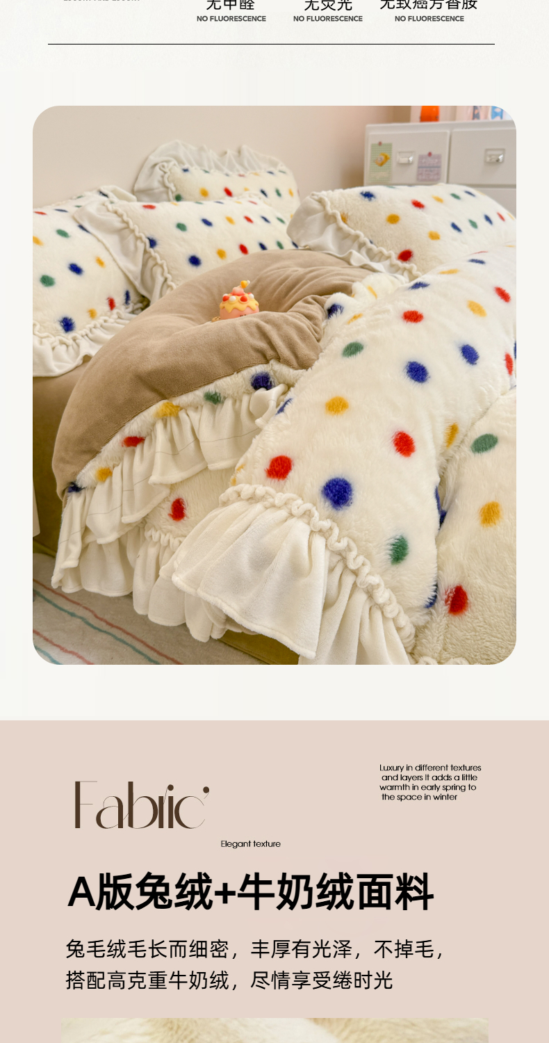 商品名称:(总)米莱家纺 2025新款兔毛绒花边牛奶绒四件套
