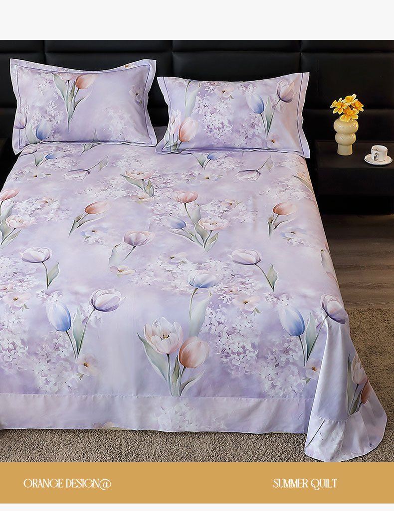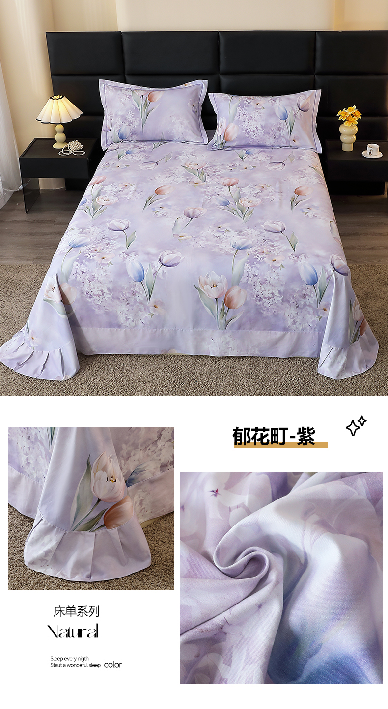 馨雅家纺 2025新款全棉磨毛数码印花单品床单 郁花町-紫