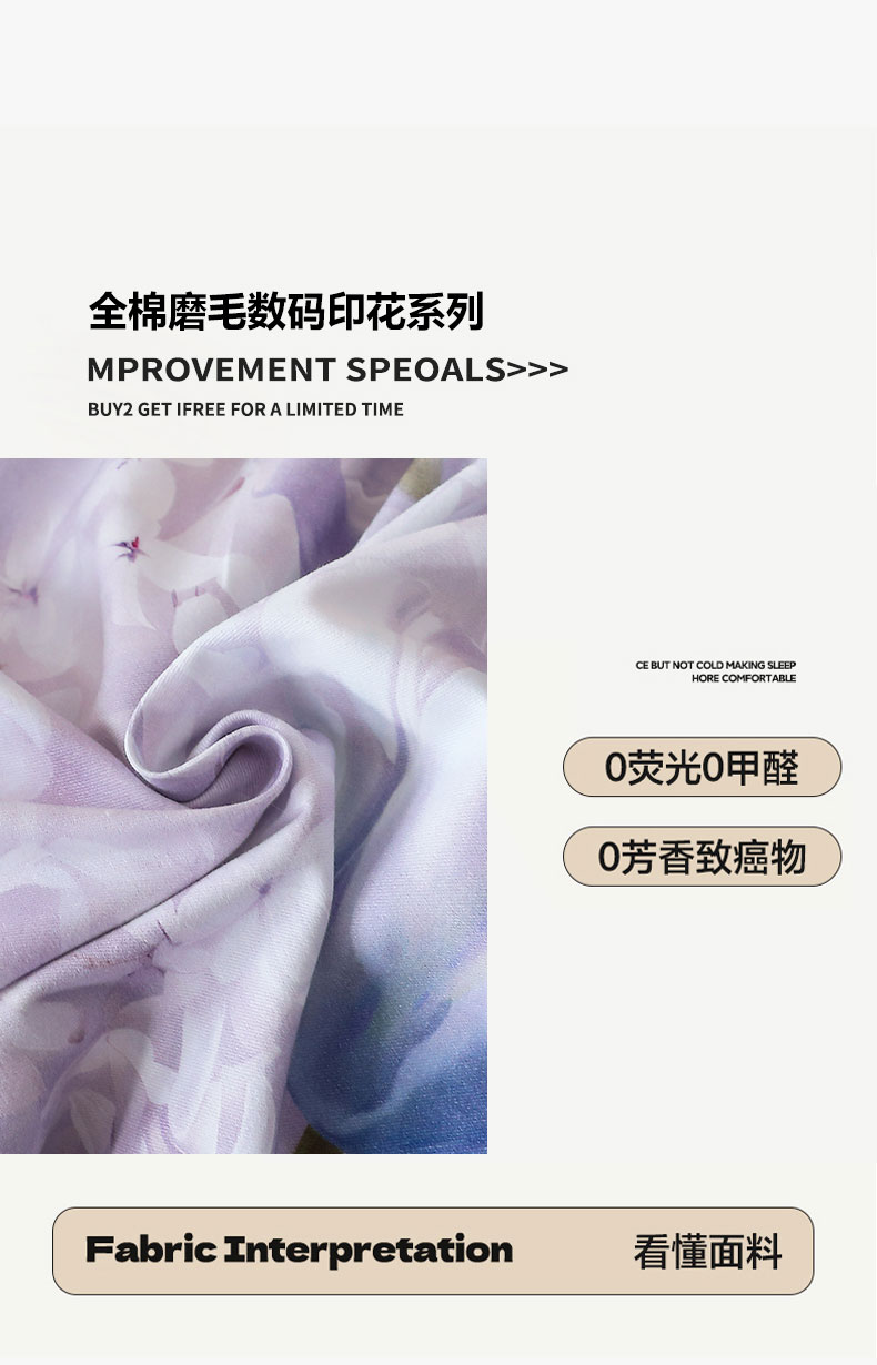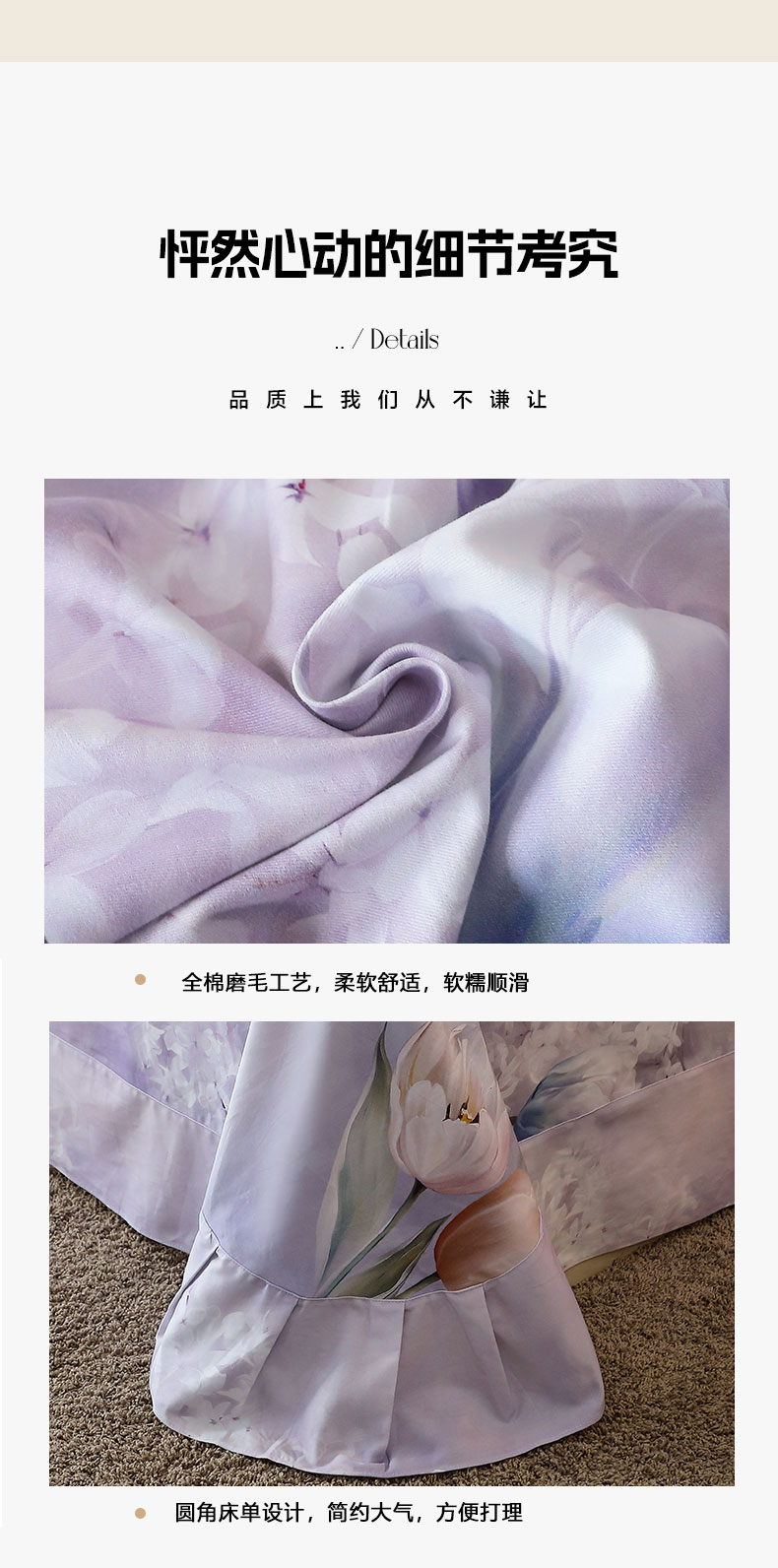 商品名称:馨雅家纺 2025新款全棉磨毛数码印花单品床单 郁花町-紫