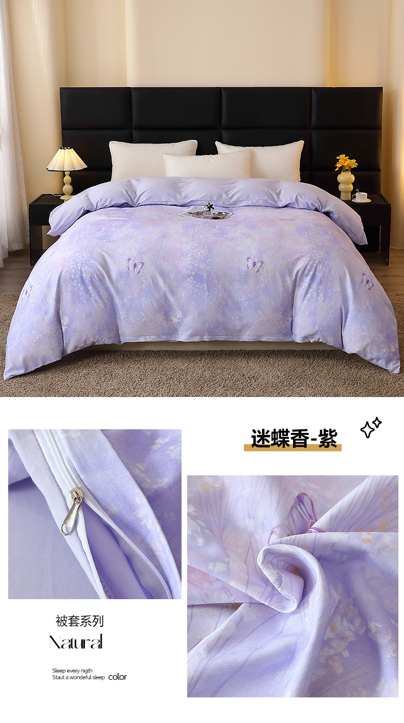 商品名称:馨雅家纺 2025新款全棉磨毛数码印花单品被套 迷蝶香-紫