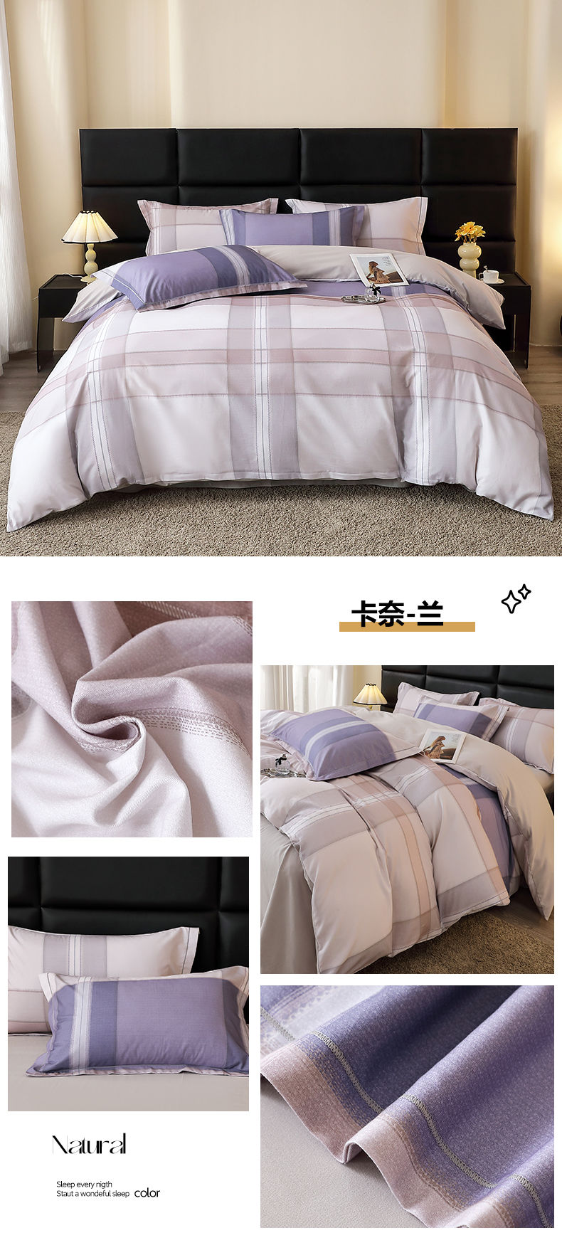 商品名称:馨雅家纺 2025新款全棉磨毛数码印花四件套 卡奈-兰