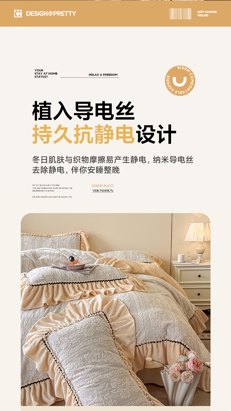 (总)民新家纺 2025新款牛奶绒烂花花边款四件套,臻爱花园 -米黄,蝶恋花 -暖粉,蝶恋花-咖,蝶恋花-蓝,蝶恋花-羊绒灰,叠影-浅灰,叠影-浅绿,马到成功 -浅米咖,马到成功 -浅米绿,马到成功-浅米灰,臻爱花园 -浅粉,臻爱花园 -浅灰,臻爱花园-浅绿,臻爱花园-浅紫