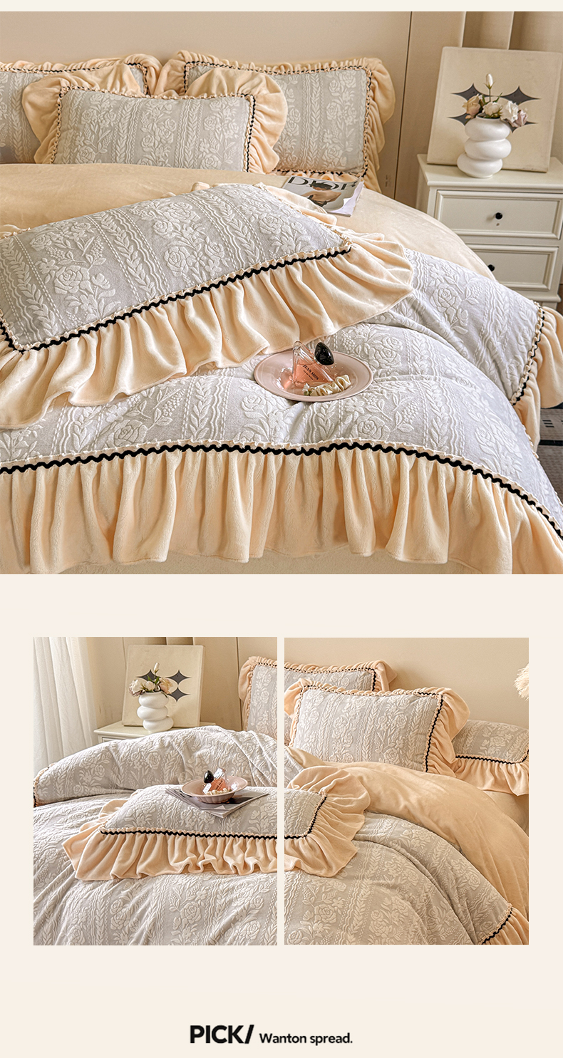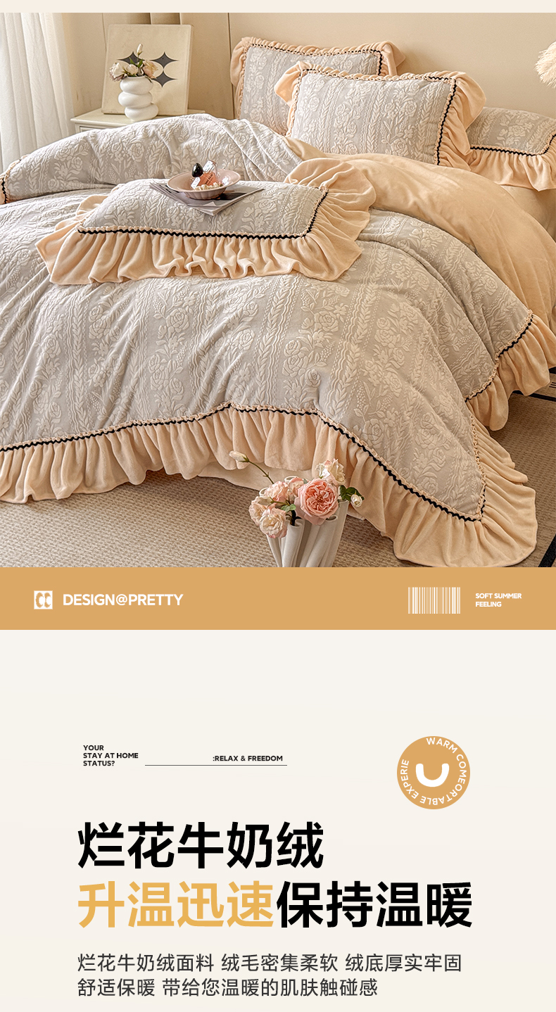 (总)民新家纺 2025新款牛奶绒花边床裙四件套,浪漫时光-浅粉,浪漫时光-大红,浪漫时光-灰,浪漫时光-浅蓝,浪漫时光-浅绿,浪漫时光-浅米黄,浪漫时光-浅紫
