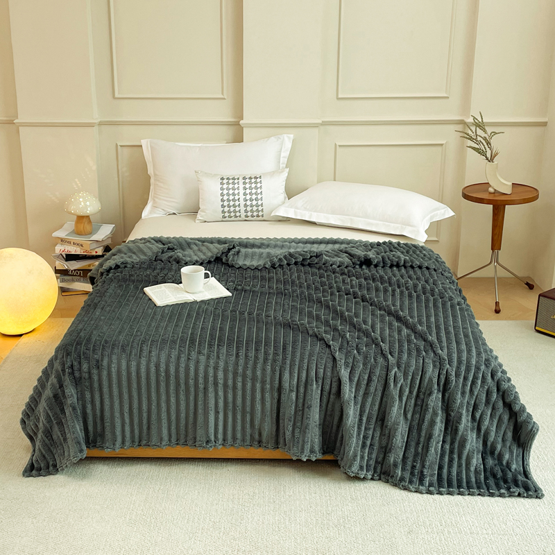 商品名称:乐窝家纺仓储 2025新款跨境外贸直播热品兔毛绒高克重多功能抽条毛毯盖毯午睡毯 藏青
