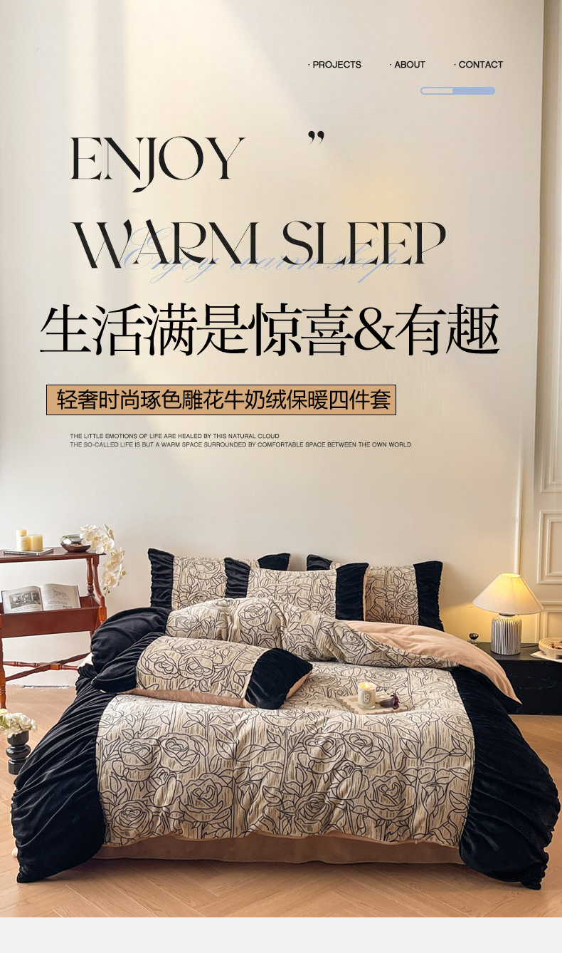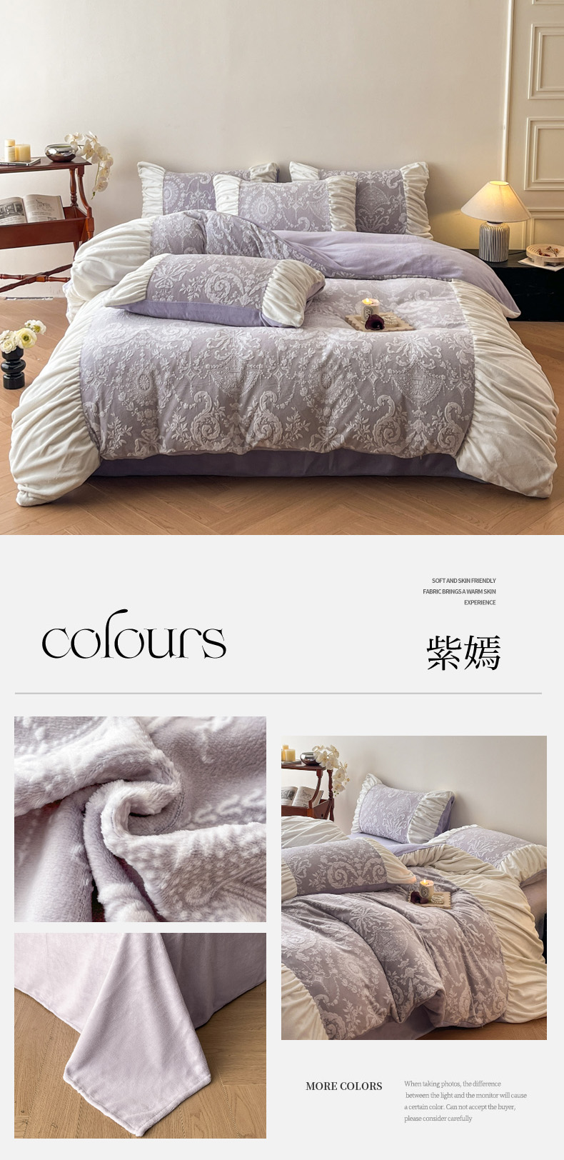 当前位置: 91家纺网 > 商品网购 > 床品套件 > 四件套 > 牛奶绒四件套 > 慕澄家纺 2025新款高克重泡泡袖琢色雕花牛奶绒四件套 玫瑰