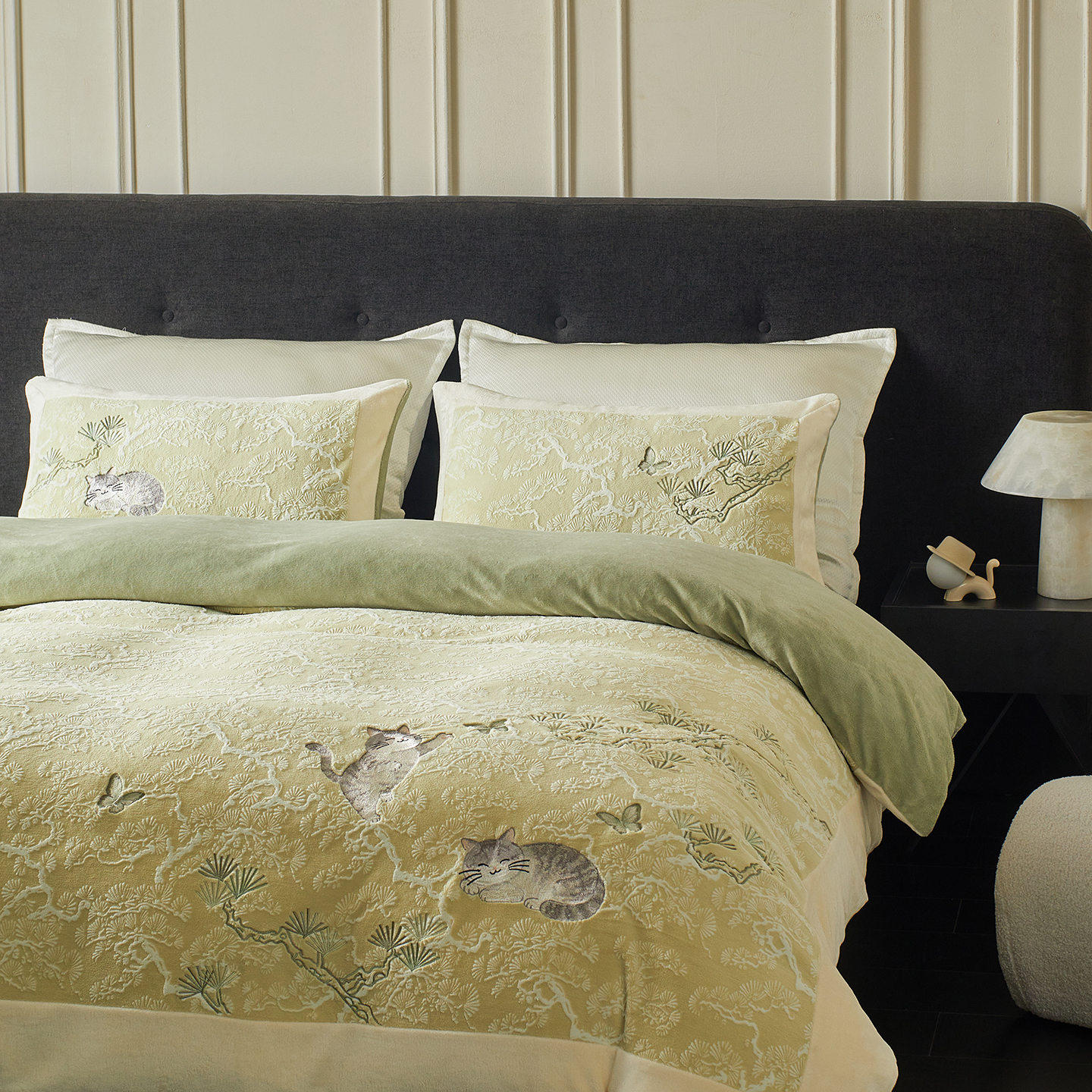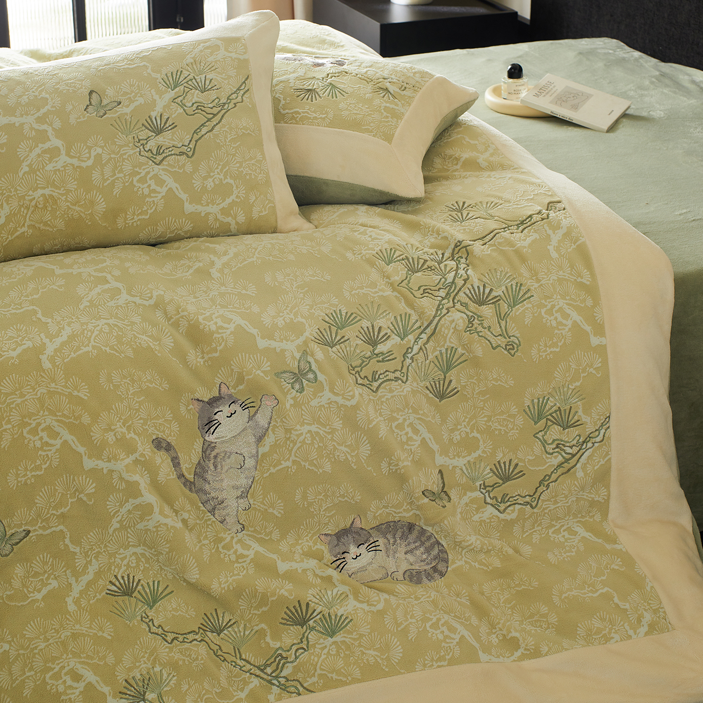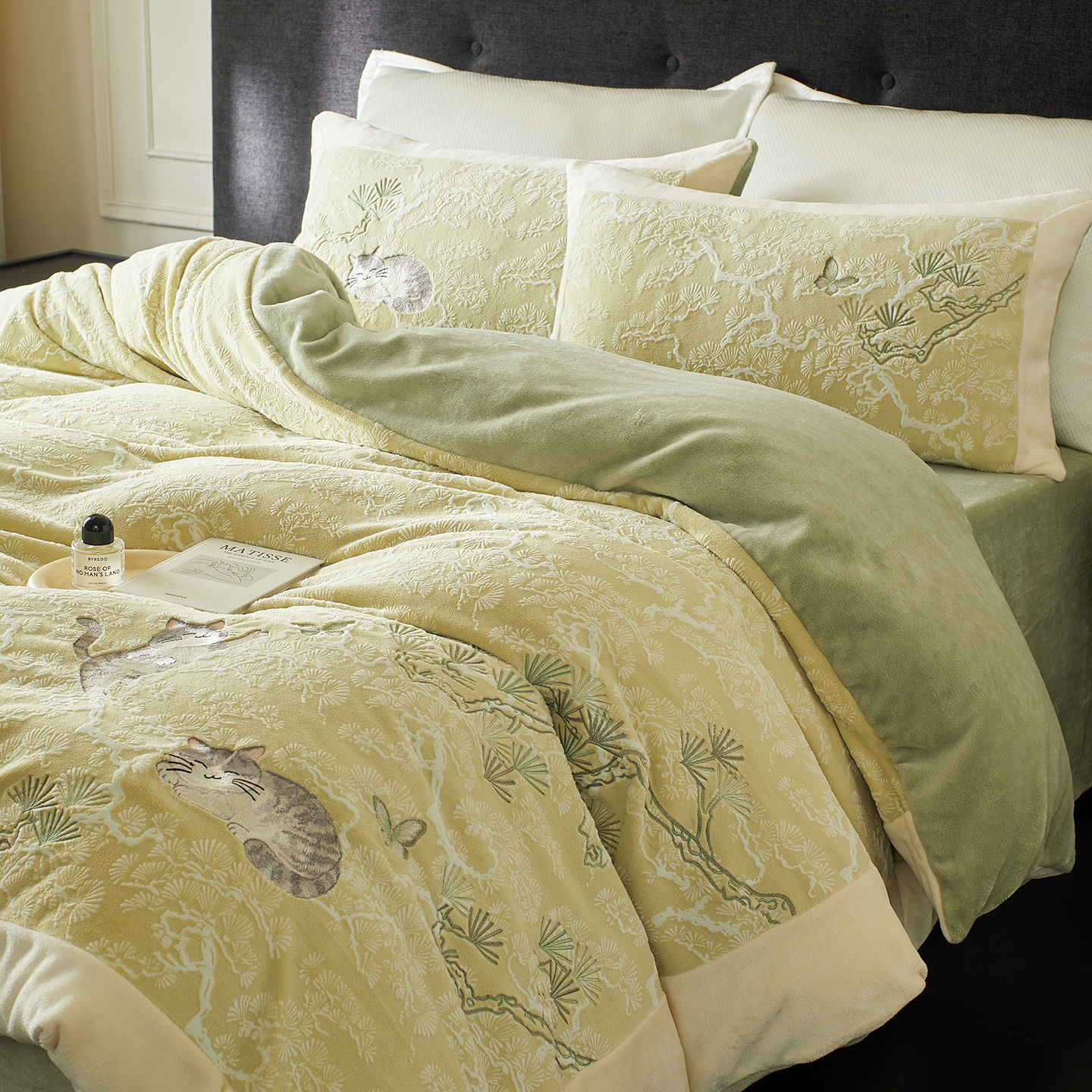当前位置: 91家纺网 > 商品网购 > 床品套件 > 四件套 > 牛奶绒四件套 > 风向标家纺 2025新款250克雕花绣花牛奶绒四件套-松涧系列风格一 银渐层-绿松间