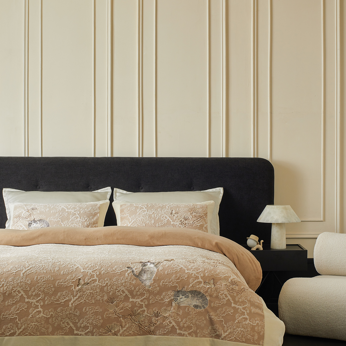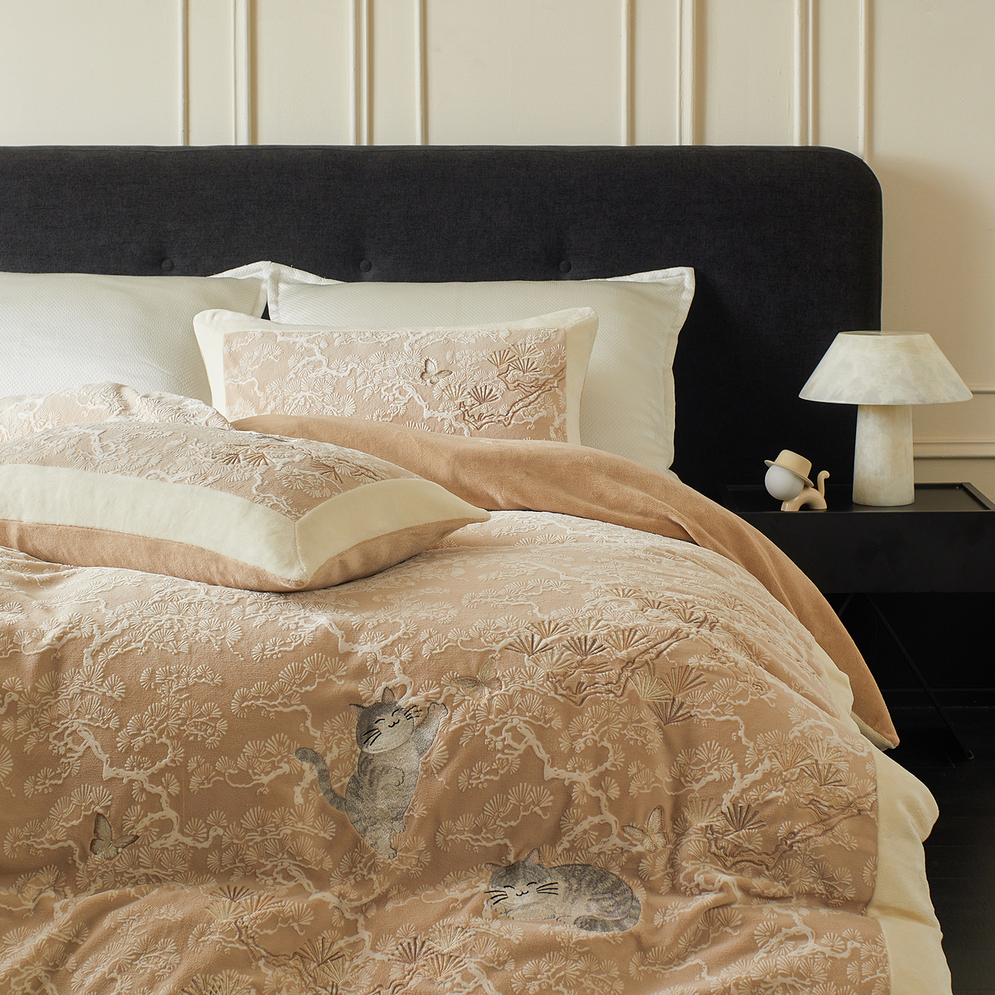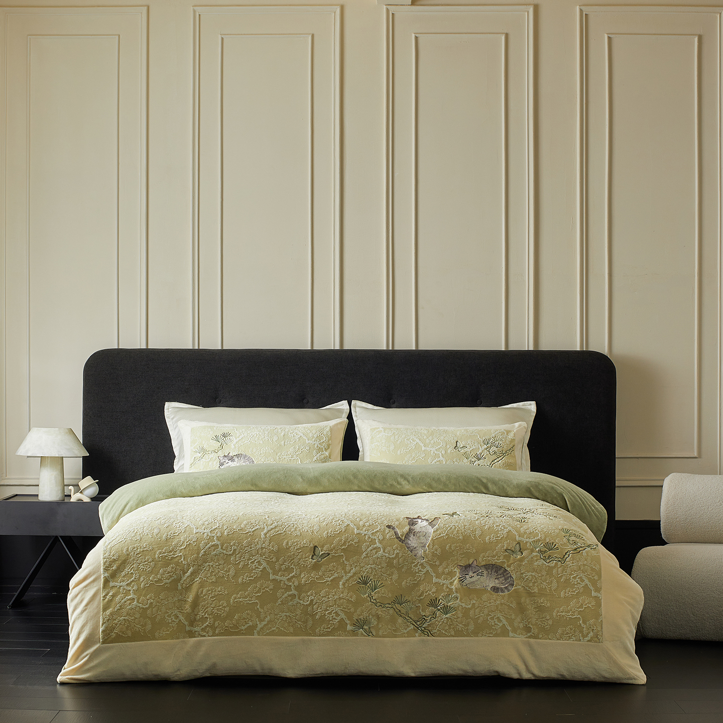 当前位置: 91家纺网 > 商品网购 > 床品套件 > 四件套 > 牛奶绒四件套 > 风向标家纺 2025新款250克雕花绣花牛奶绒四件套-松涧系列风格一 银渐层-绿松间