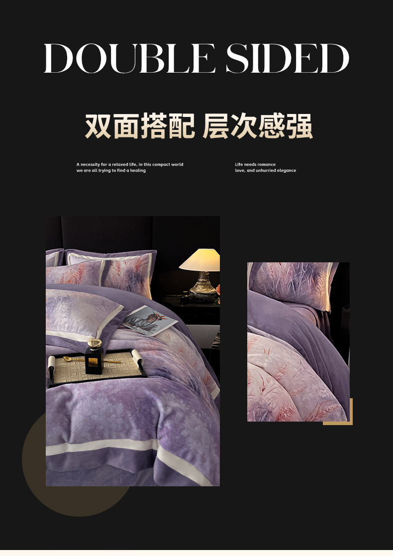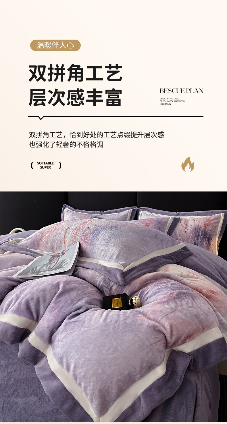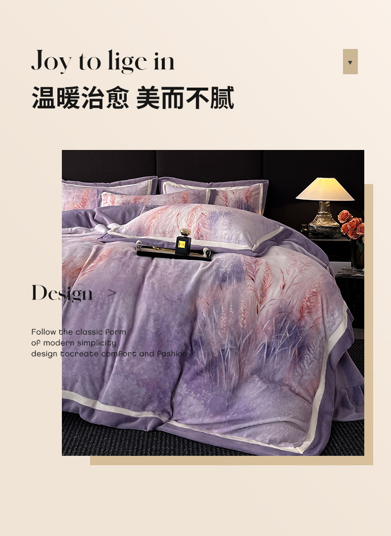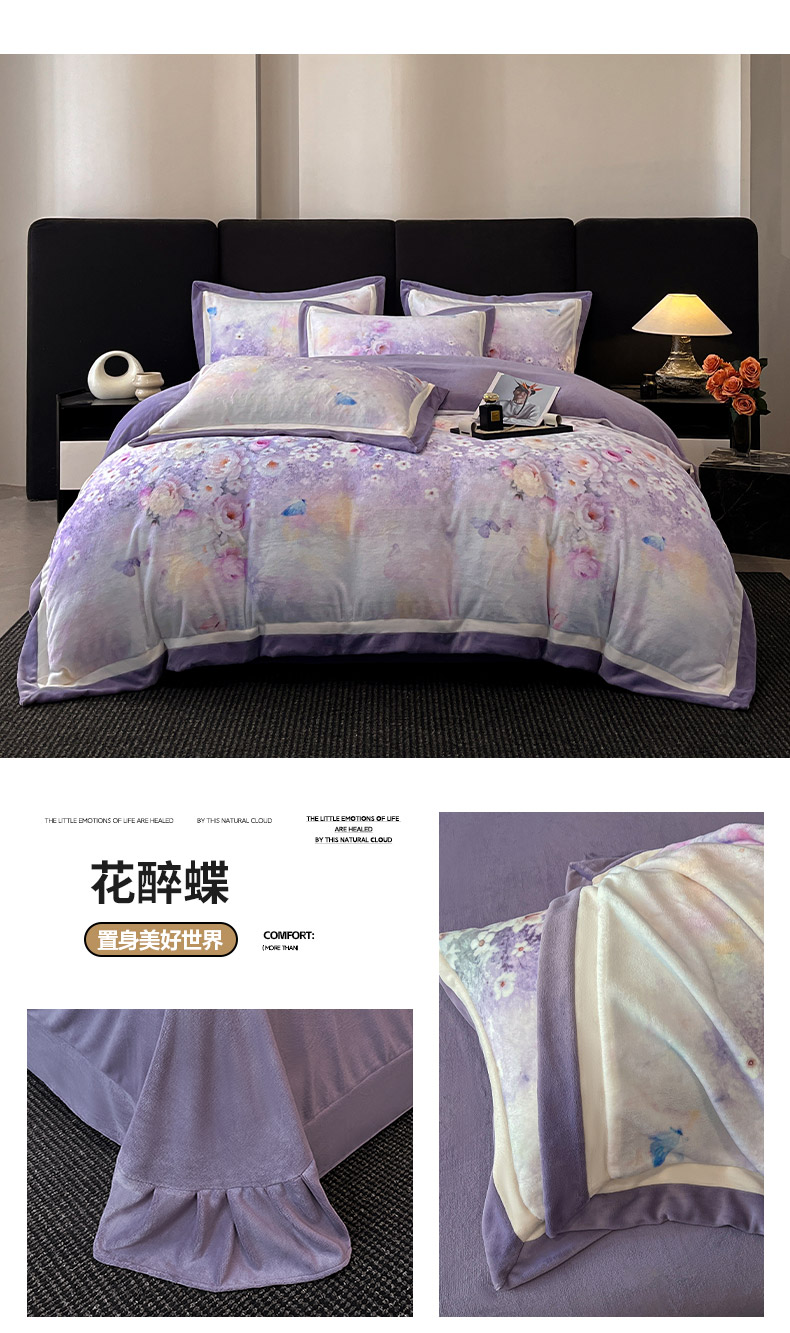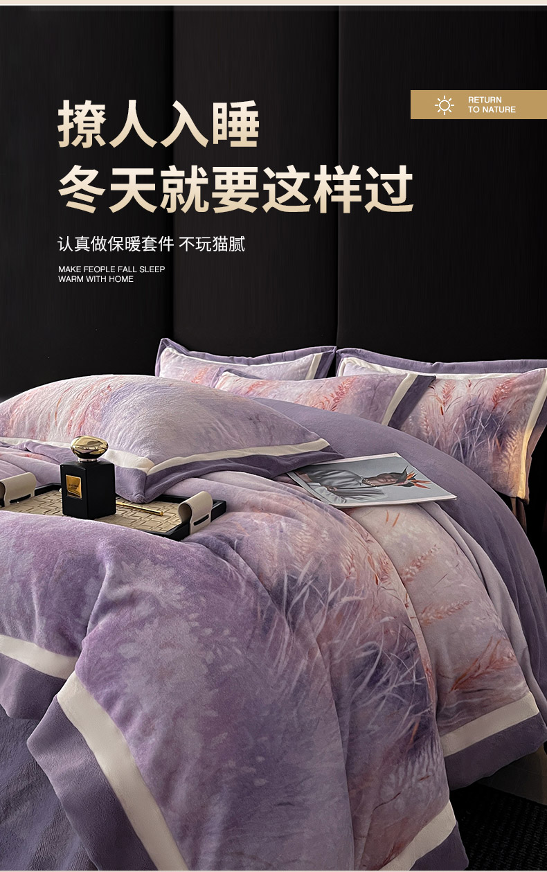 当前位置: 91家纺网 > 商品网购 > 床品套件 > 四件套 > 牛奶绒四件套 > 吾诺家居 2025新款双拼角工艺数码牛奶绒四件套-芳华 麦田-紫