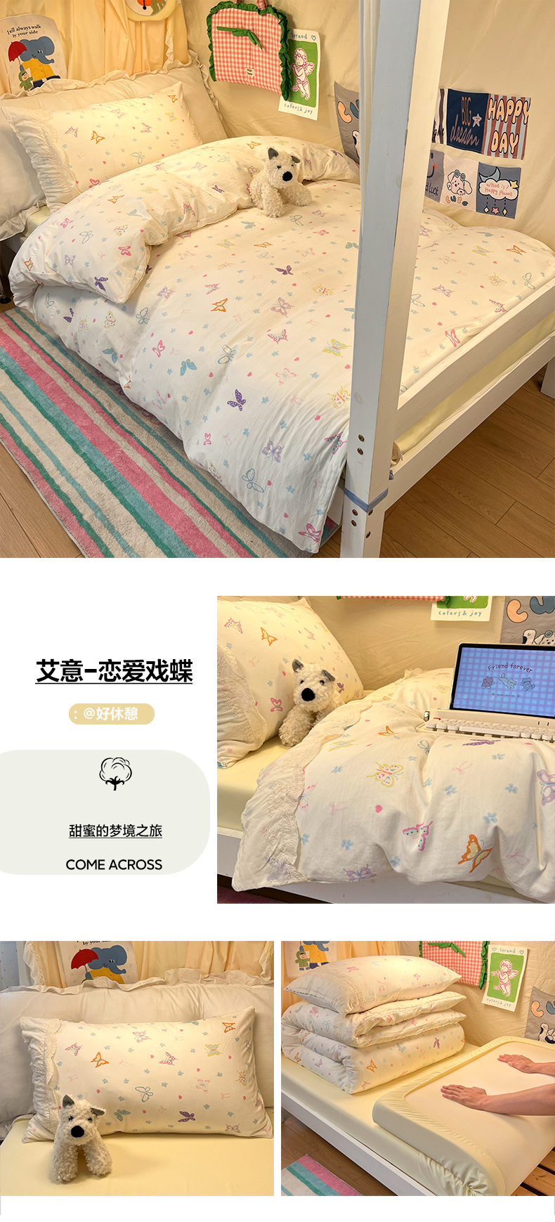 当前位置: 91家纺网 > 商品网购 > 床品套件 > 四件套 > 澜妃 2025新款糯叽叽水洗棉全棉蕾丝花边宿舍床上下铺三件套-艾意系列 艾意-特萌西高地