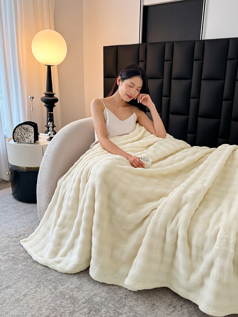 商品名称:乐窝家纺仓储 2025新款简约纯色泡泡毛毯毯子 泡泡纯色-粉色