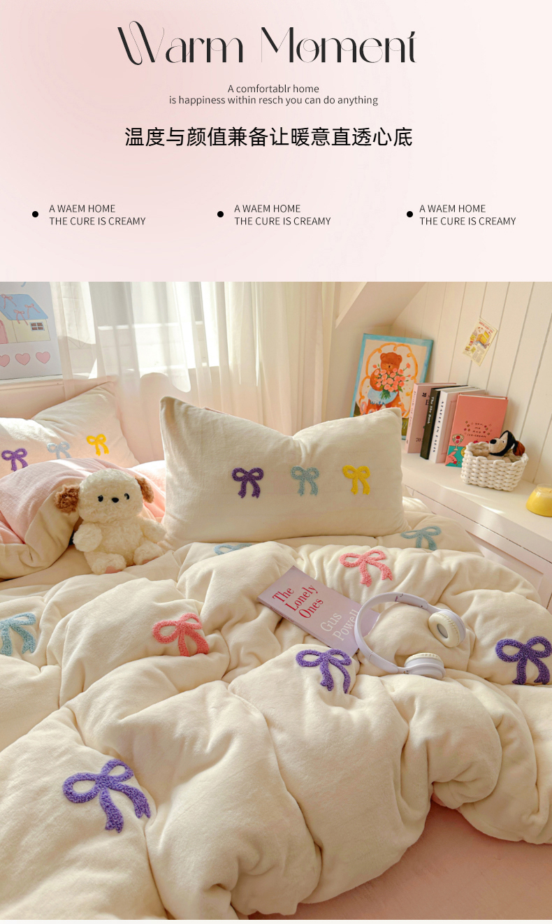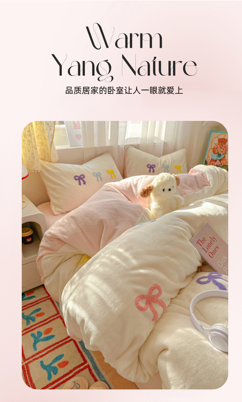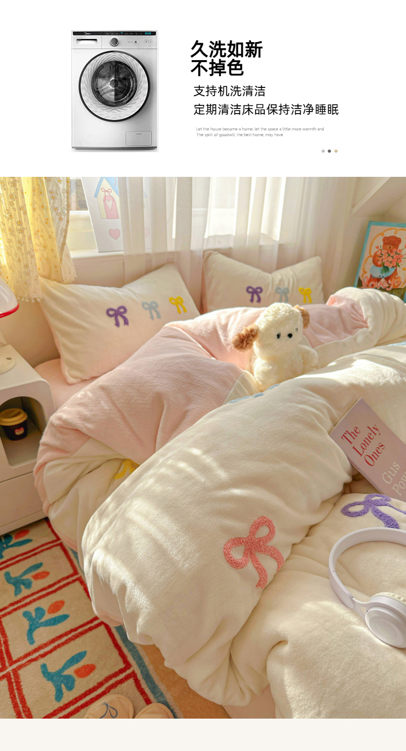 当前位置: 91家纺网 > 商品网购 > 床品套件 > 四件套 > 毛巾绣四件套 > 老K (原美阁) 2025新款毛巾绣牛奶绒四件套-彩色蝴蝶结 彩色蝴蝶结芝士蓝