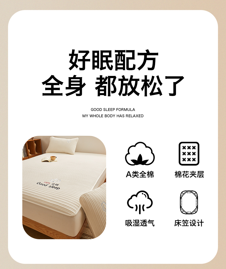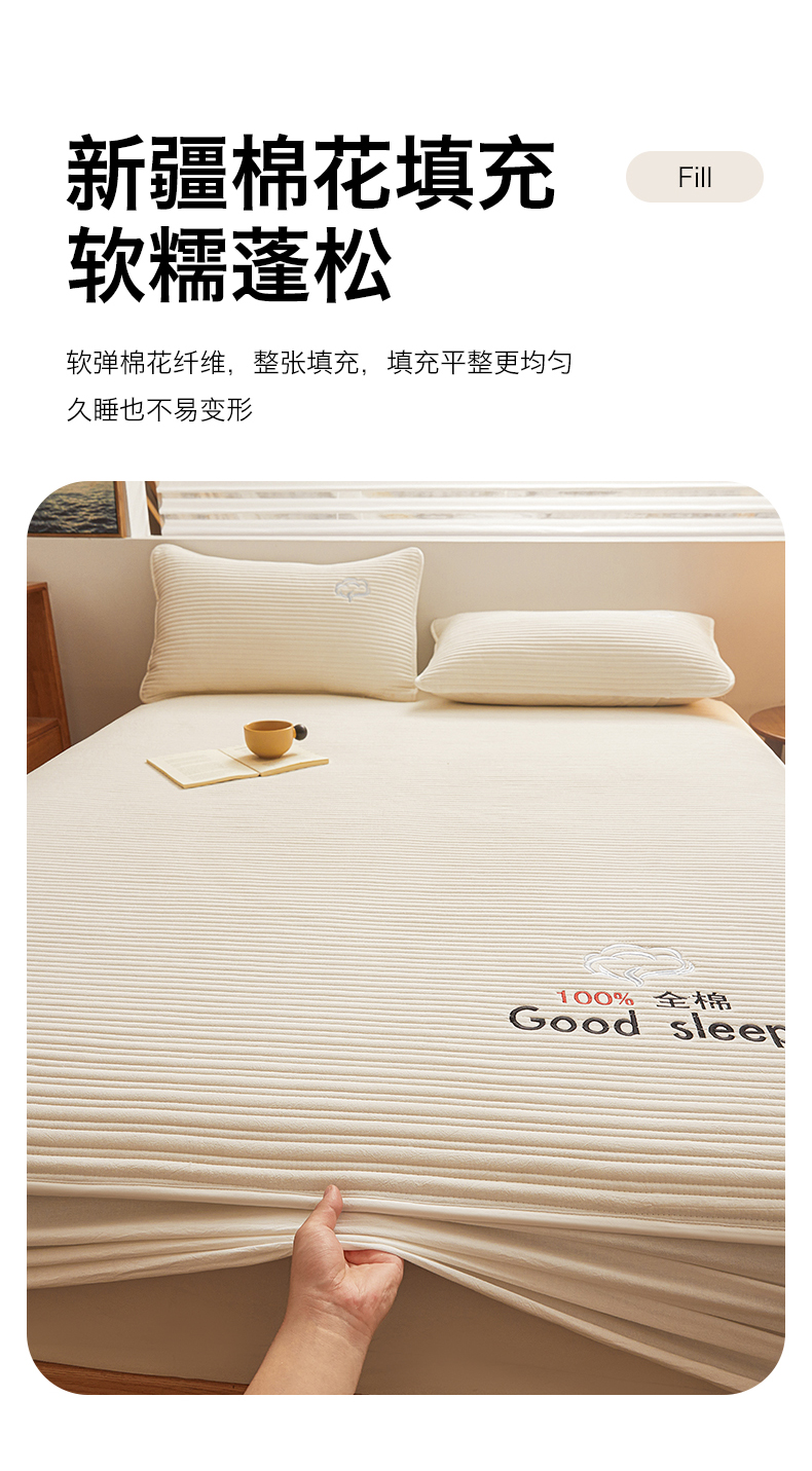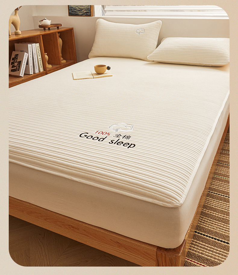 (总)居眠 2025新款A类全棉色织水洗棉夹棉棉花床笠-清梦