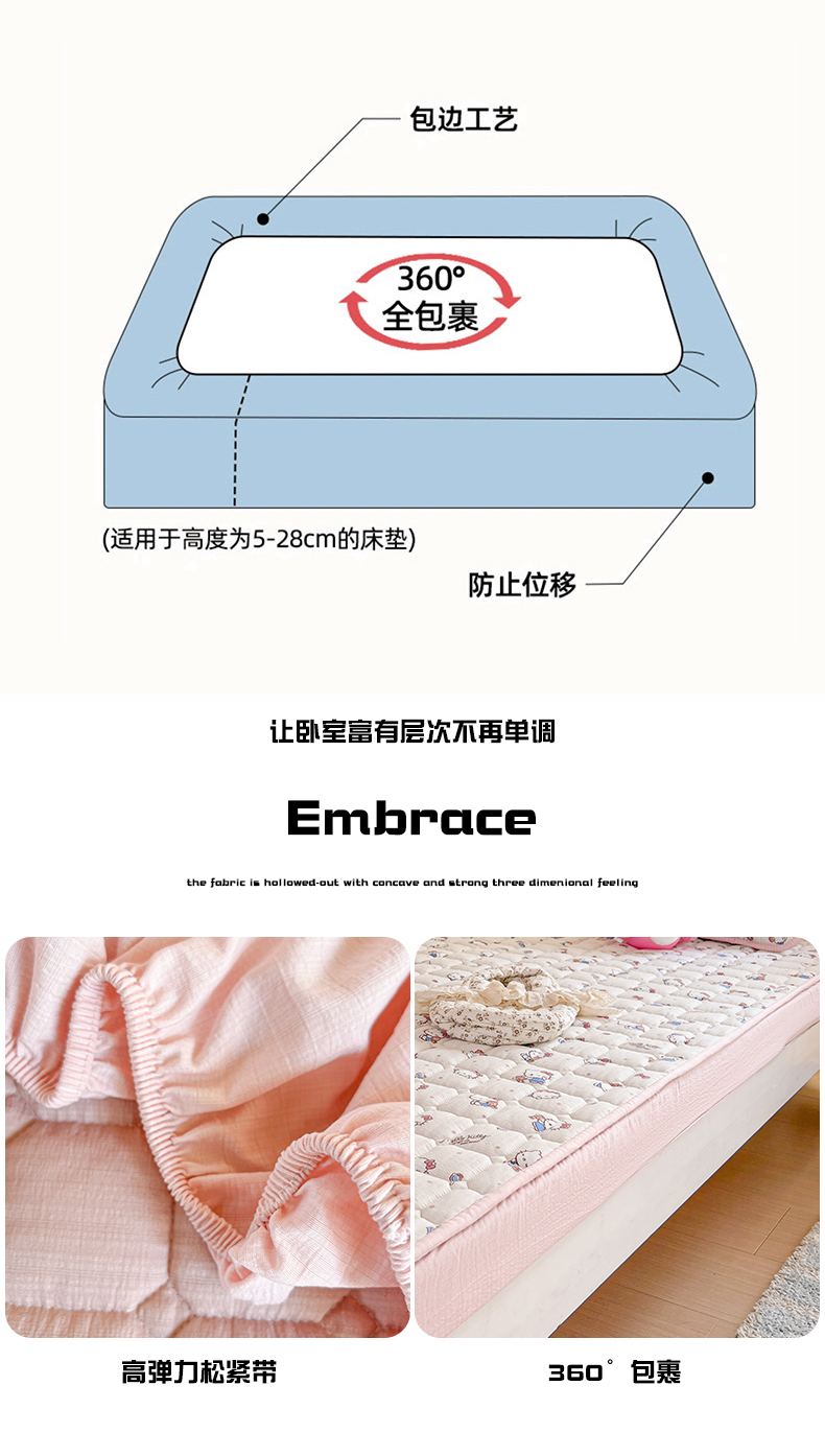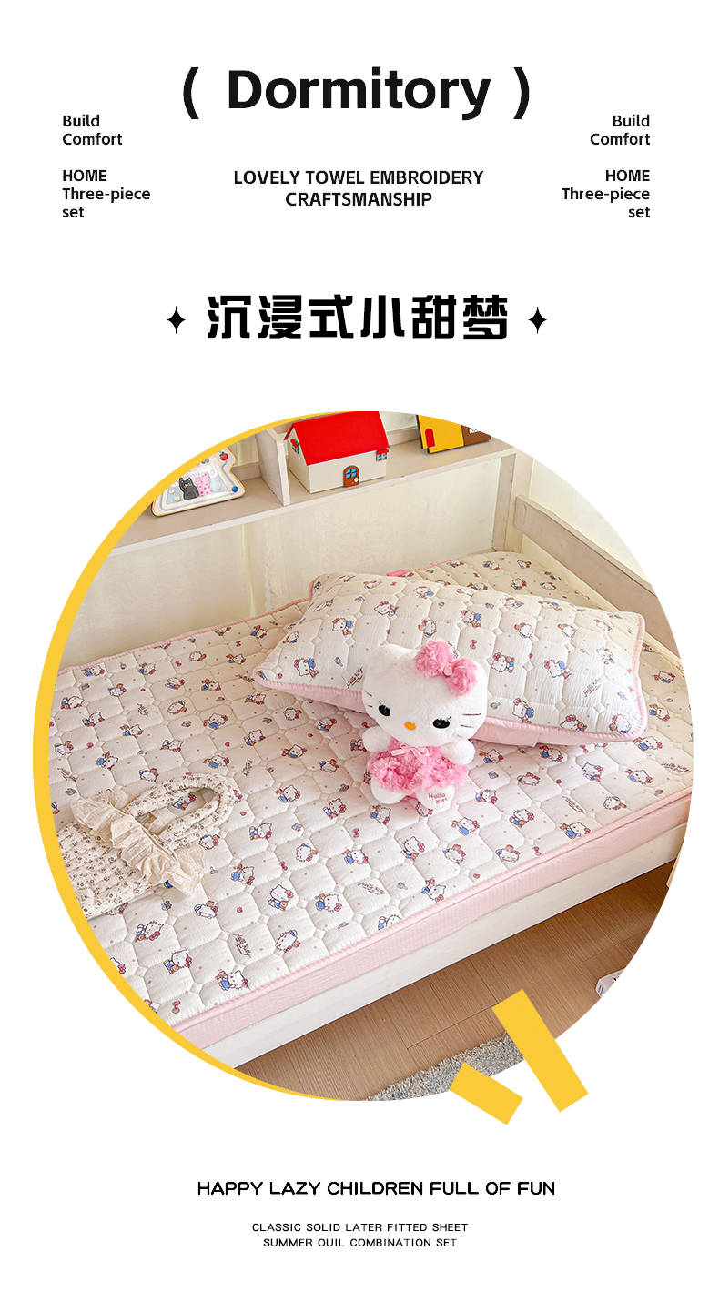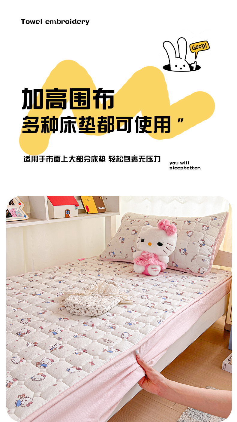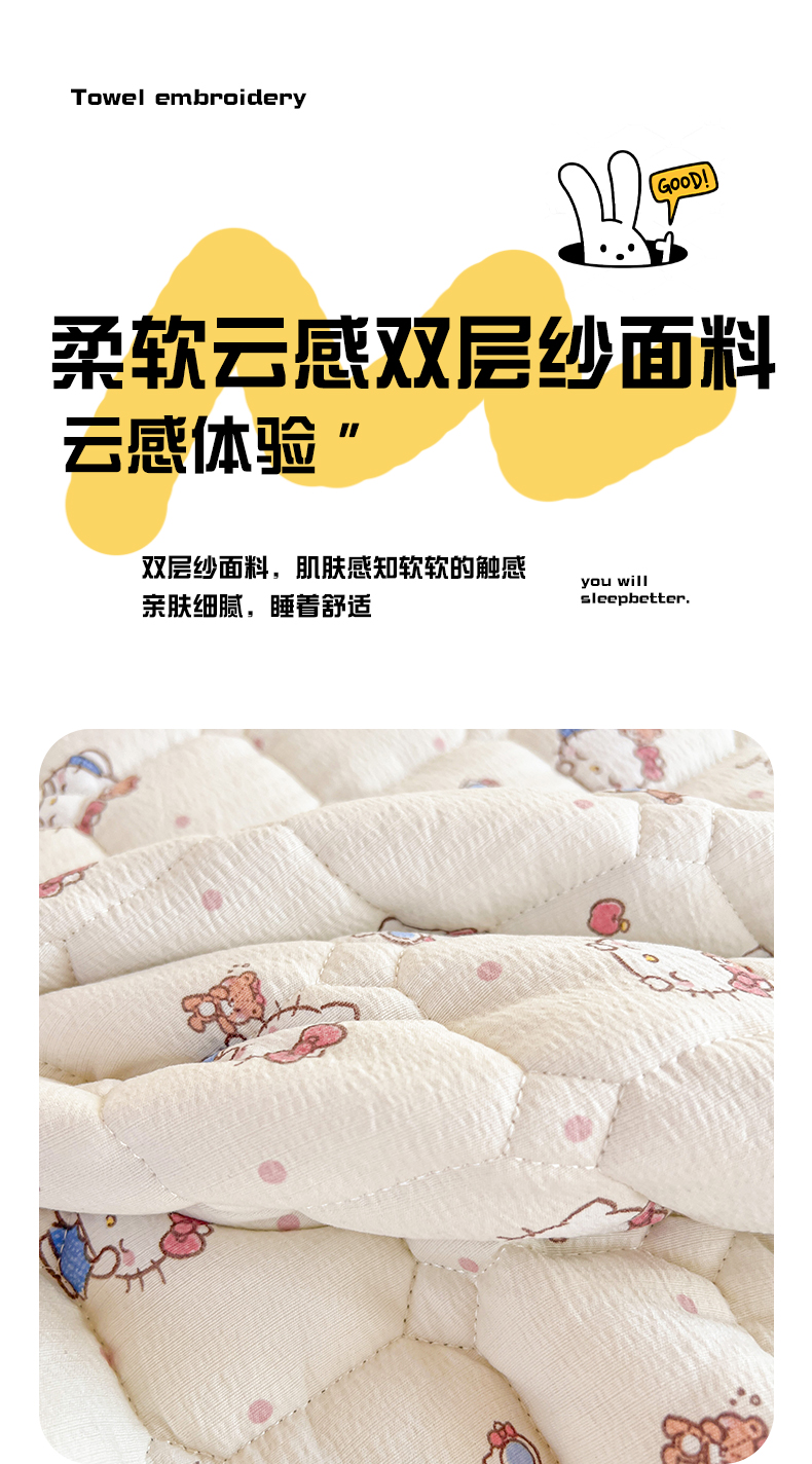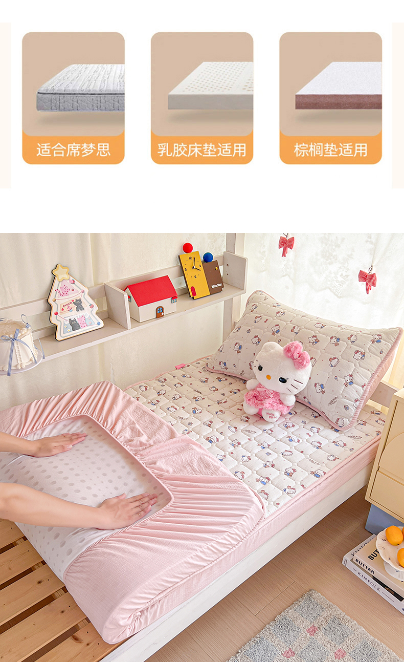 星禾优选 2025新款三丽鸥云感双层纱夹棉床笠系列 床笠款-凯蒂与熊