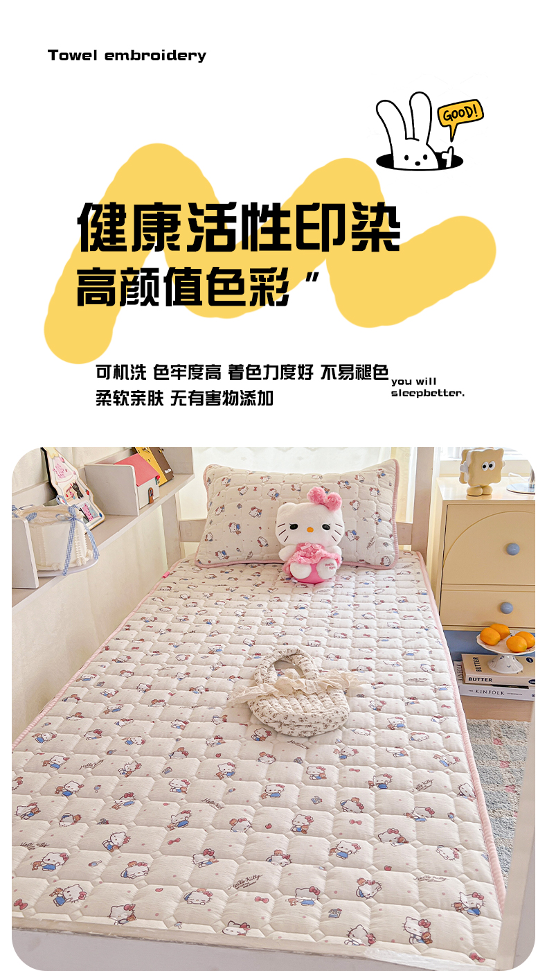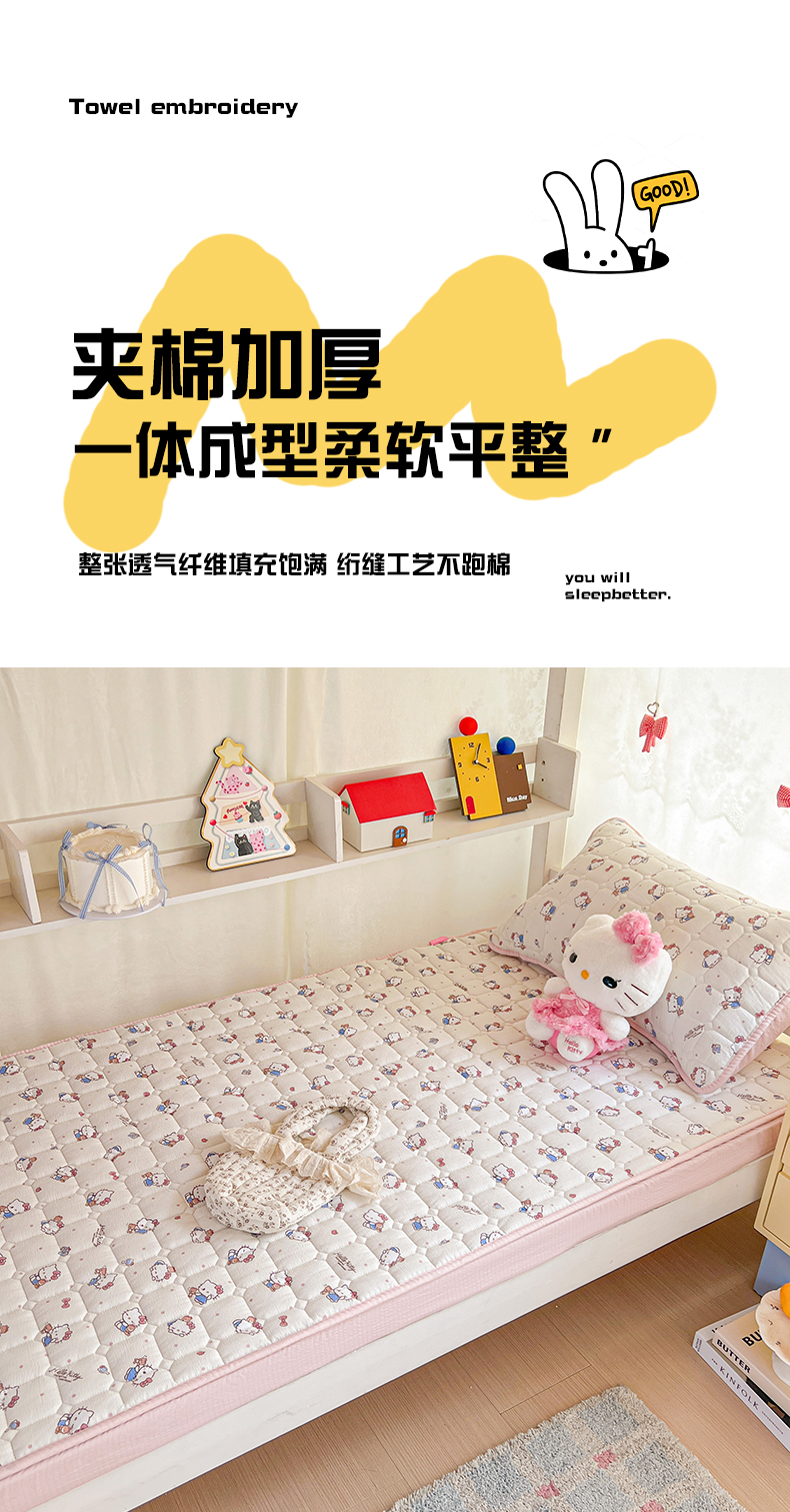 商品名称:星禾优选 2025新款三丽鸥云感双层纱夹棉床笠系列 床笠款-凯蒂与熊