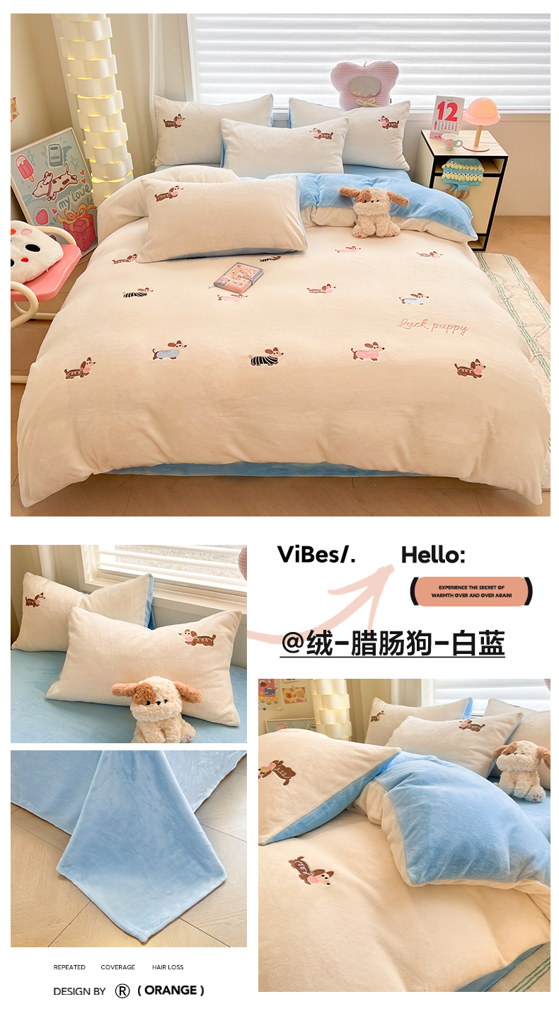 (总)如一 2025新款高克重卡通贴布绣牛奶绒四件套,爱心猫,狮毛狗,雪纳瑞,线团狗,豹纹兔,蓝格猫,粉格猫,咖啡狗,雨伞猫