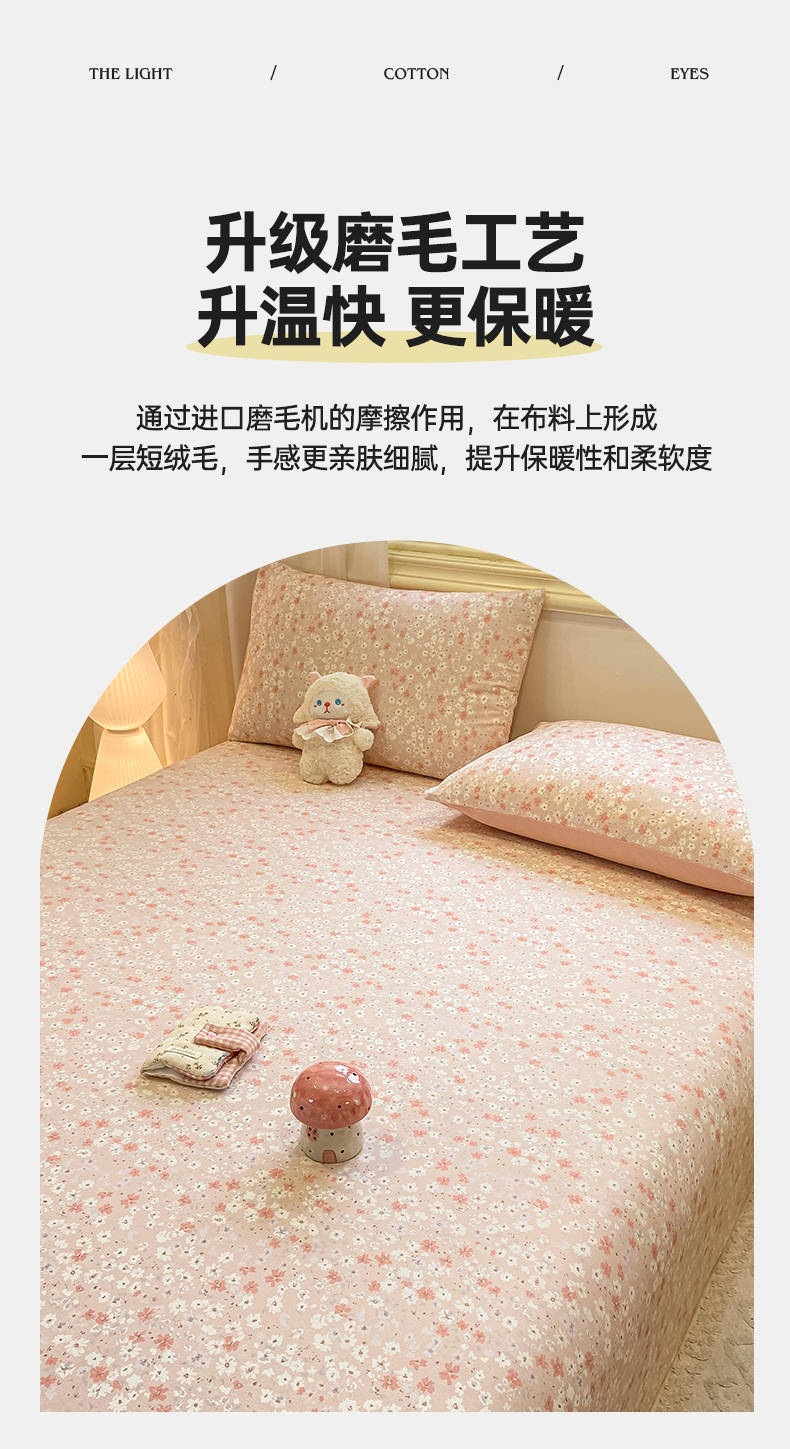 • 91家纺网 家纺一手货源 找家纺 灰鲸 2025新款全棉纯棉磨毛单床单 零落-粉