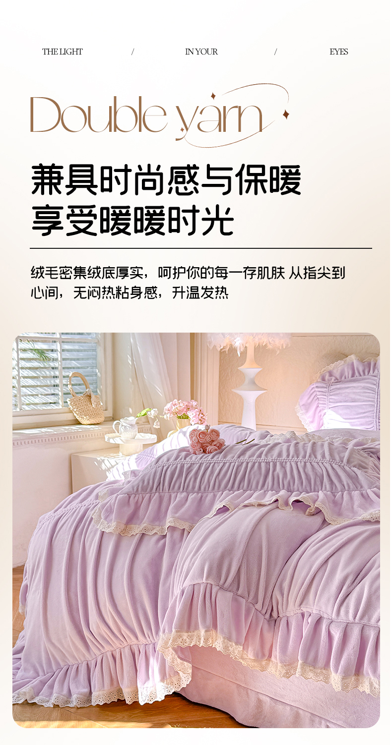 (总)满座家居 2025新款清新唯美木耳边加厚牛奶绒四件套雕花绒四件套,艾莎 粉,雏菊晨露 粉,田园风景 绿,蝶恋花 粉,邂逅,安妮 粉