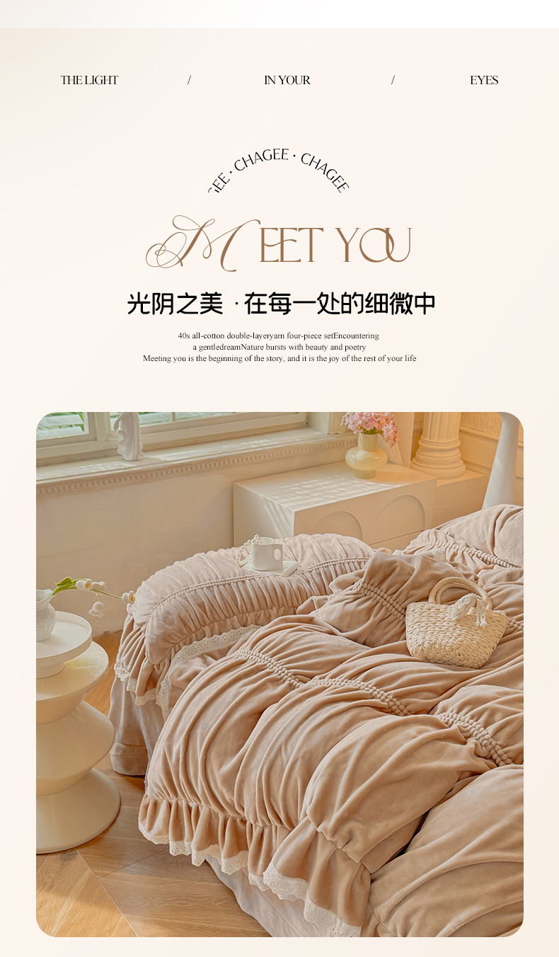 (总)满座家居 2025新款高克重230克糯糯绒牛奶绒工艺款消光牛奶绒四件套轻法式简约保暖四件套-洛可可