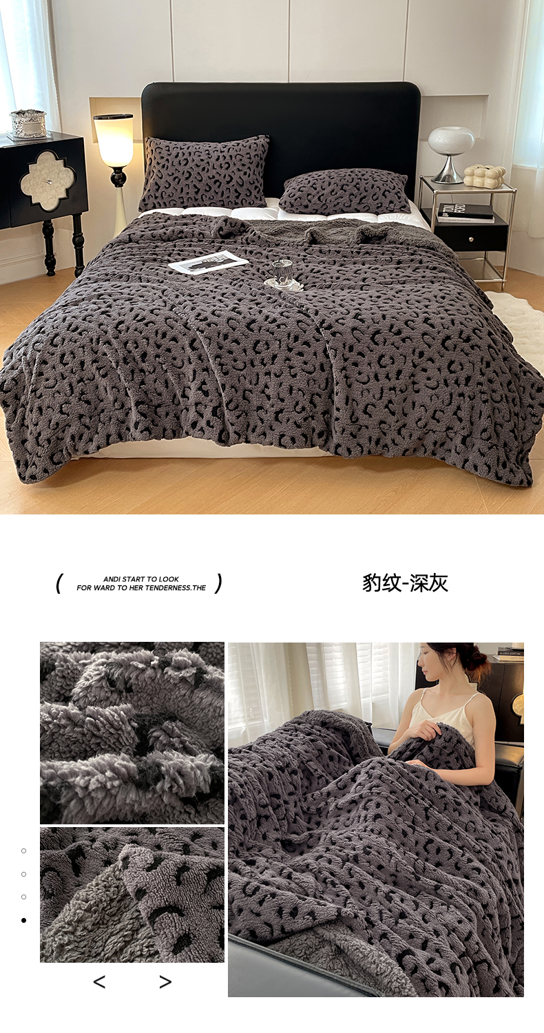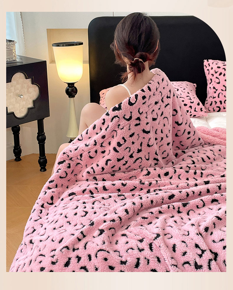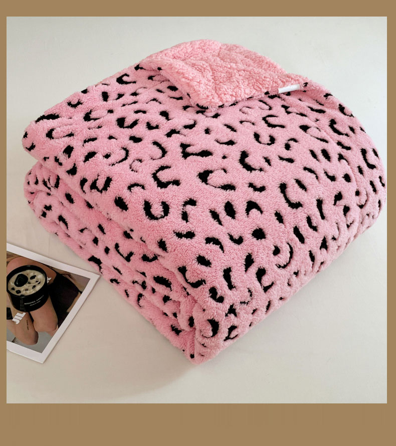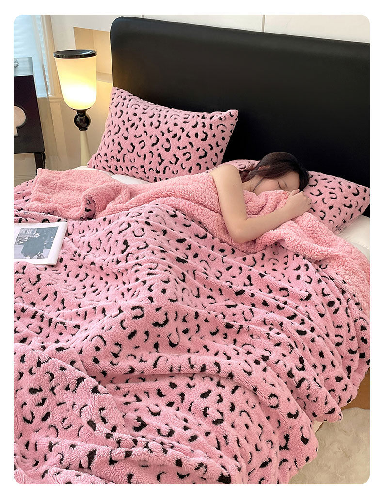 楼兰公主毛毯专供 2025爆款阳离子豹纹双层单层羊羔绒跨境绒毯 豹纹-黛粉