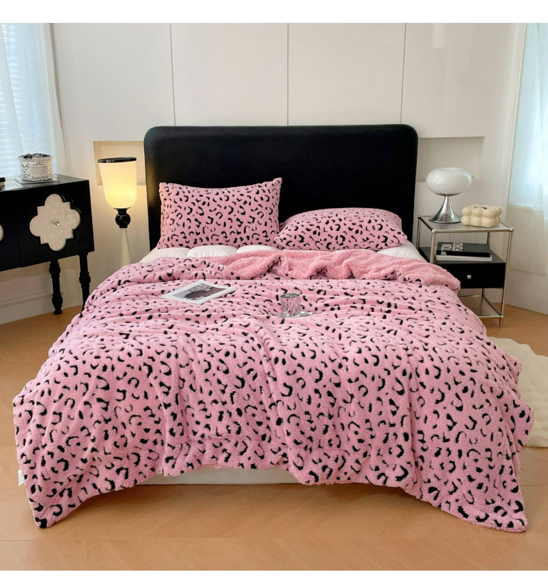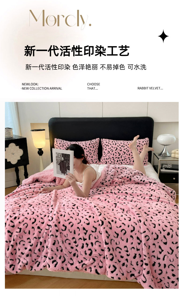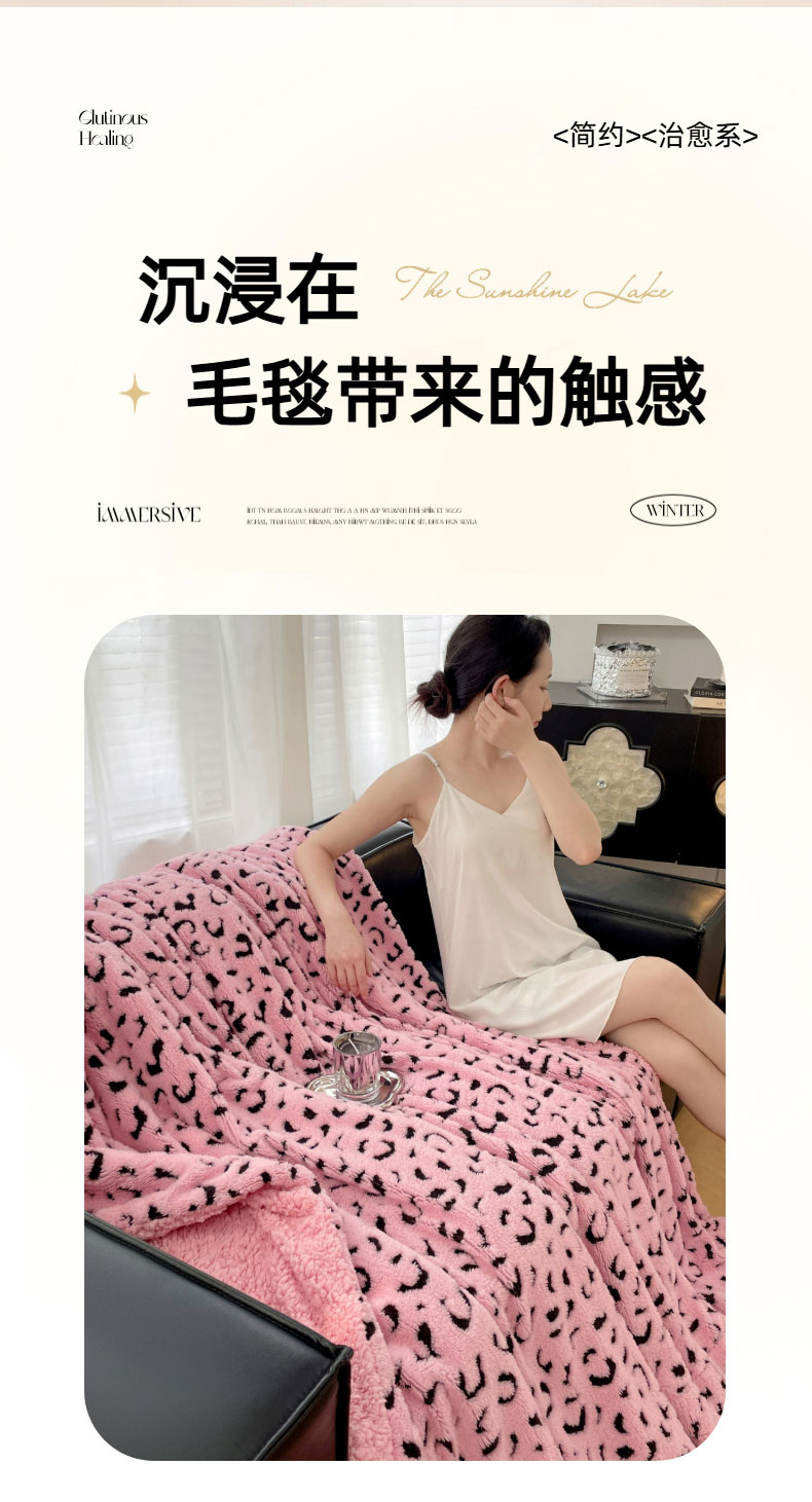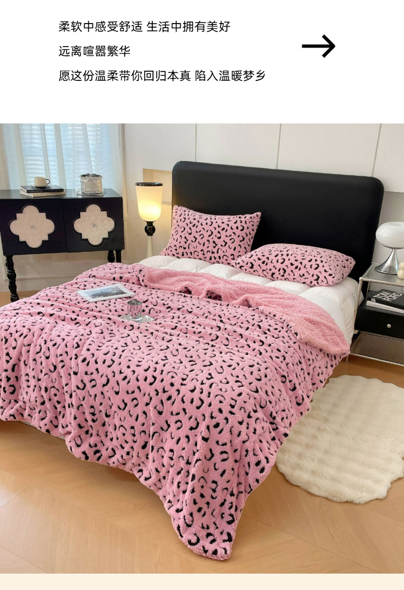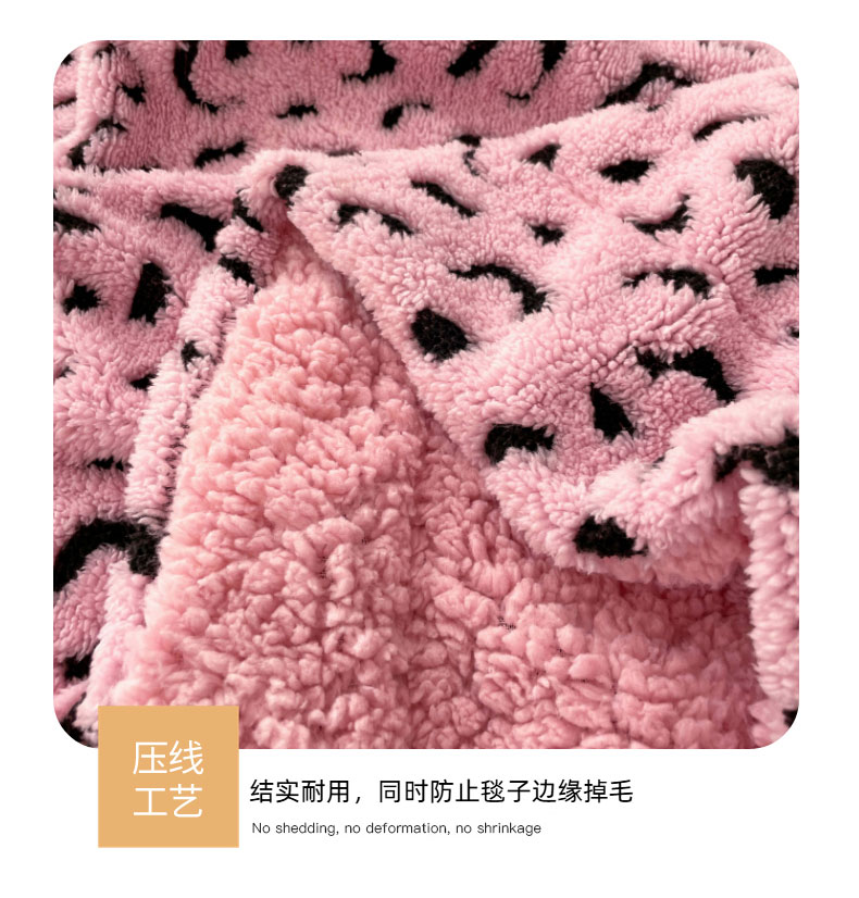商品名称:楼兰公主毛毯专供 2025爆款阳离子豹纹双层单层羊羔绒跨境绒毯 豹纹-黛粉