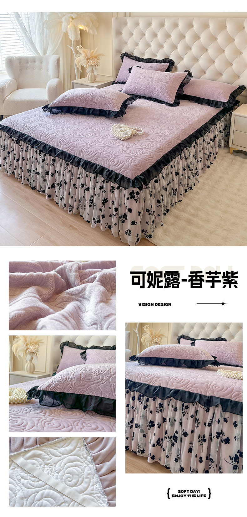 (总)恋尚 2025新款加厚牛奶绒保暖床笠式床裙单品床裙床裙单件-莫奈花园(床裙控价130起),莫奈花园-蜜桃粉,莫奈花园-奶油白,莫奈花园-清新粉,莫奈花园-香芋紫,莫奈花园-椰蓉灰