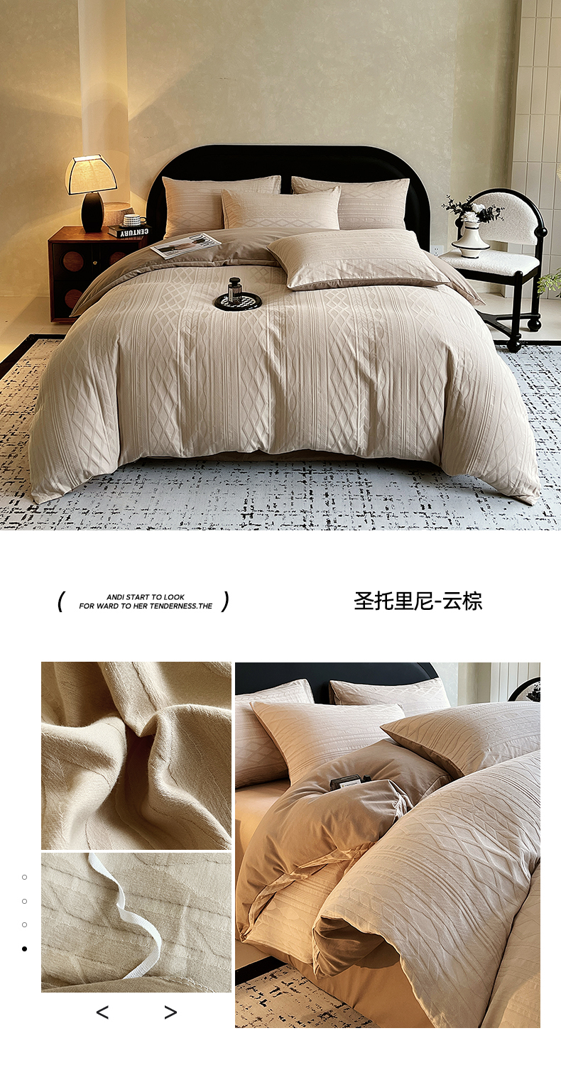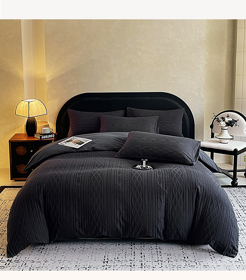 当前位置: 91家纺网 > 商品网购 > 床品套件 > 四件套 > 全棉普通四件套 > 琪格格纺织 2025新款60s全棉纯棉轻奢高级感立体浮雕提花加厚磨毛四件套 圣托里尼-墨黑