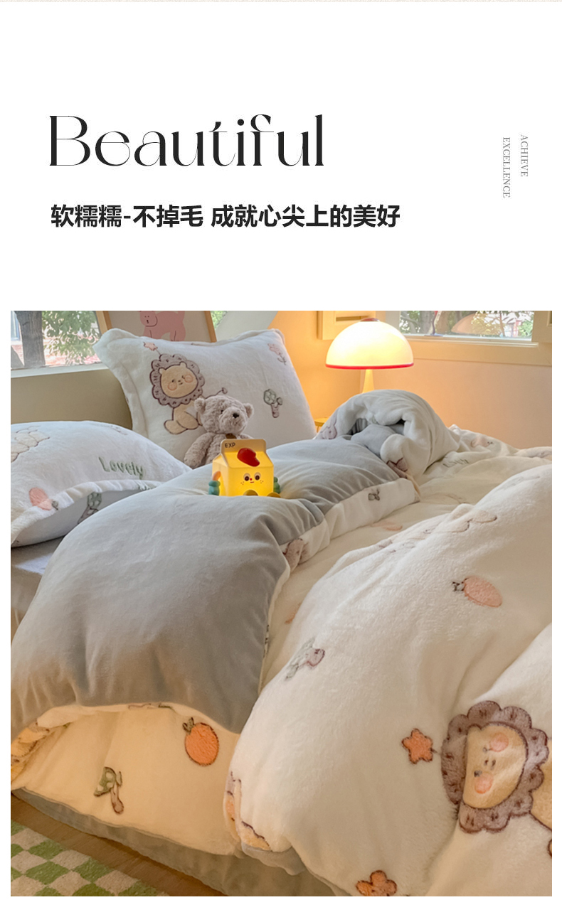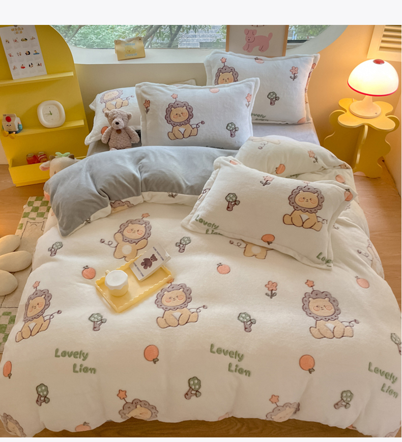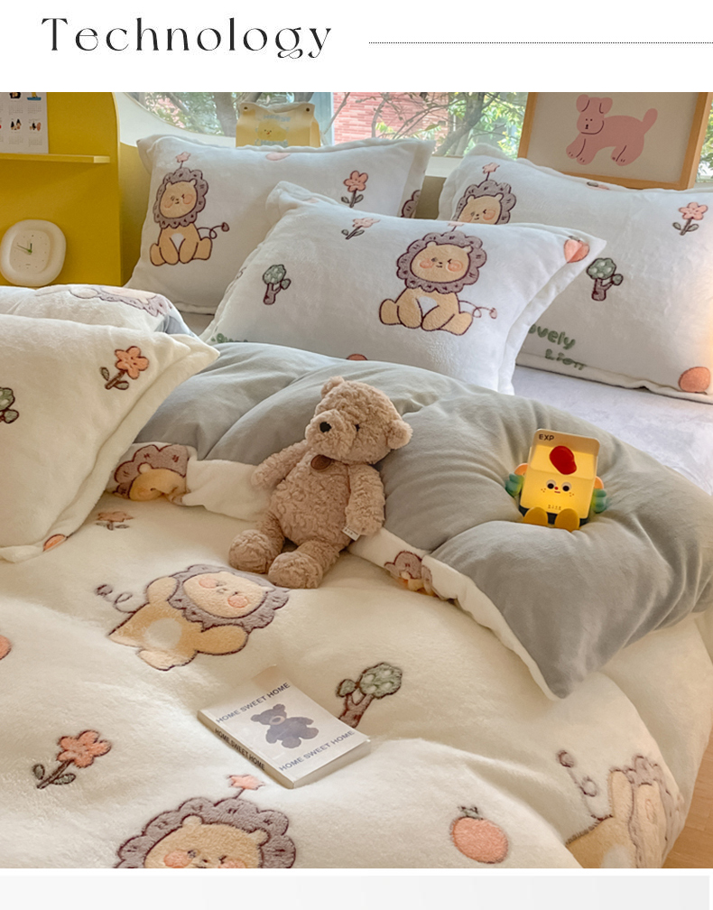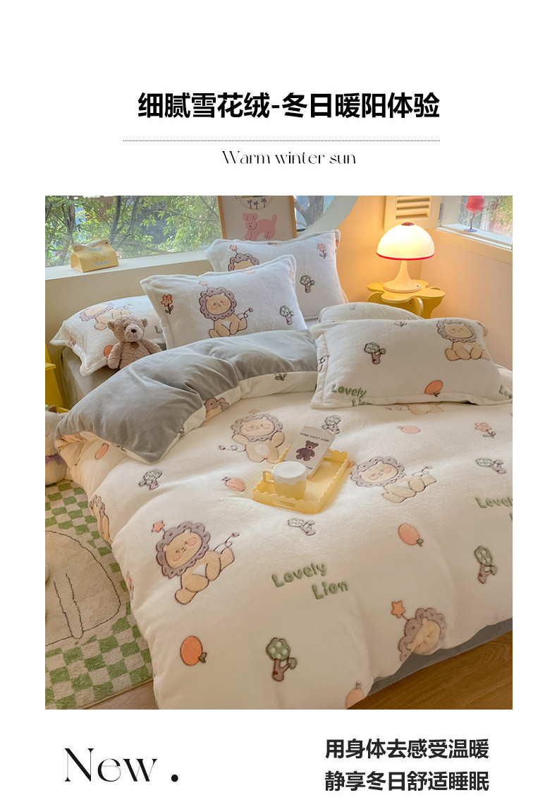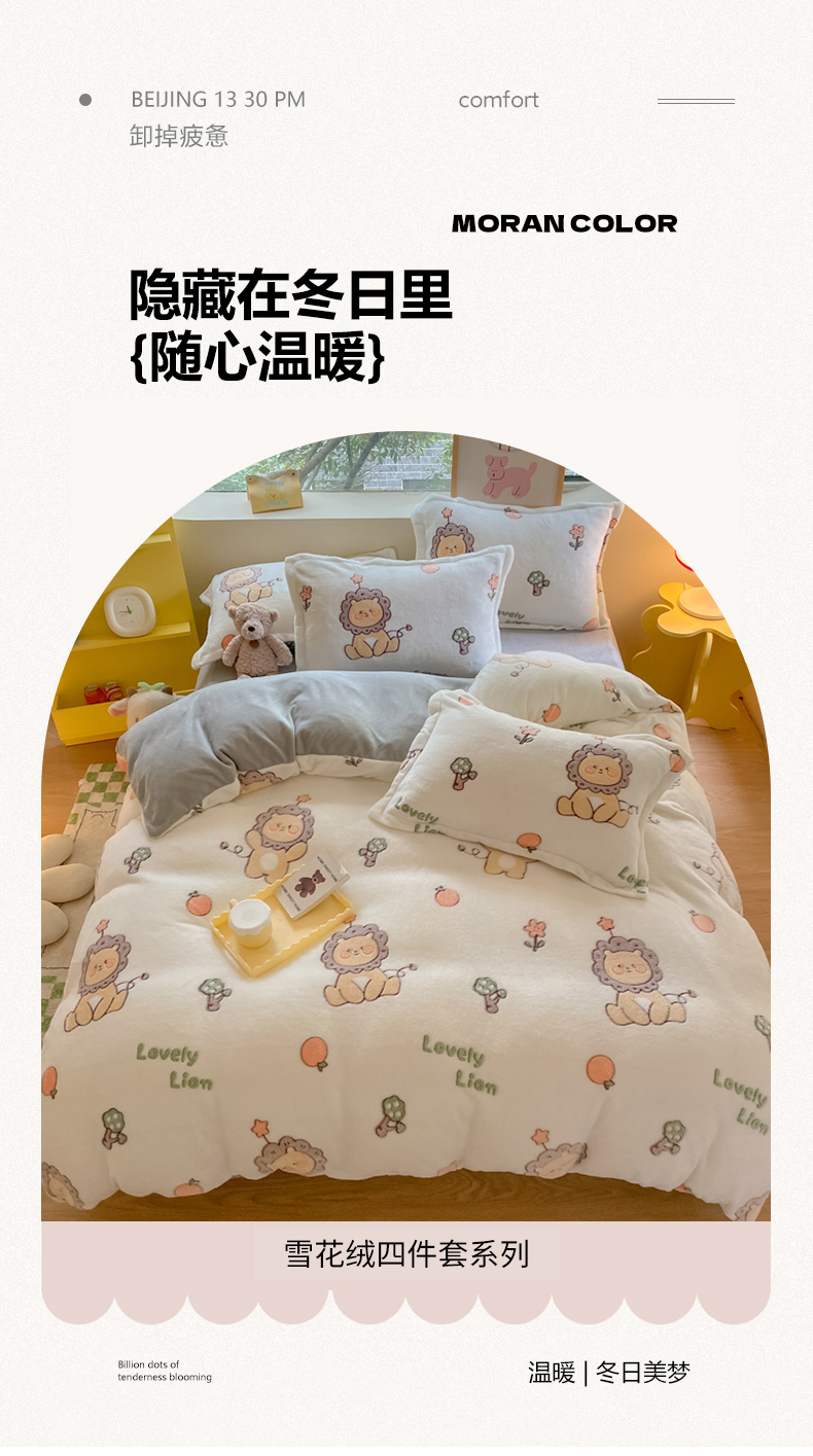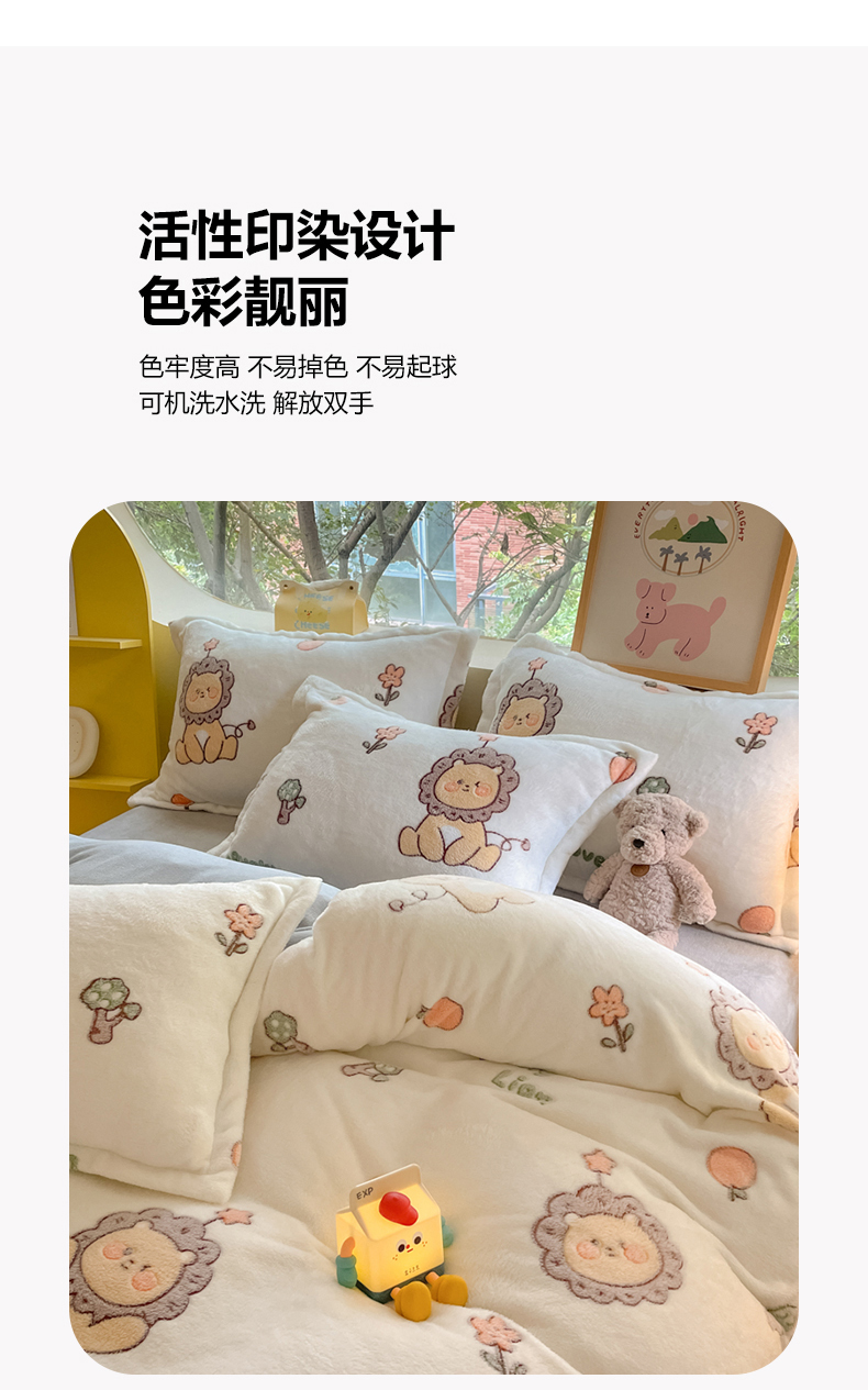 商品名称:慕尚家纺 2025新款高克重印花雪花绒被套单件 幸运狮