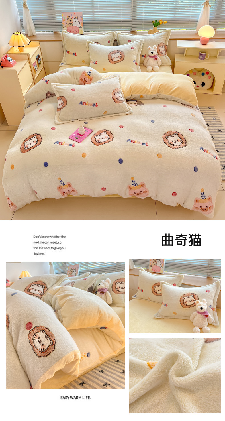 (总)慕尚家纺 2025新款豆豆绒刺绣四件套,大耳狗 白蓝,玫瑰 白粉