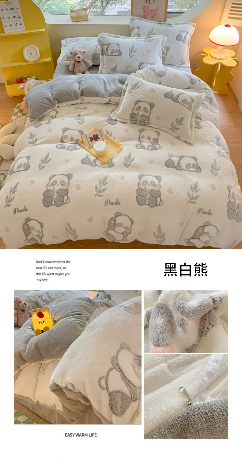 (总)2025新款牛奶绒+全棉毛巾绣四件套,背篓熊猫,乖乖熊,蔬菜庄园,甜甜圈,小比熊,摇摇马