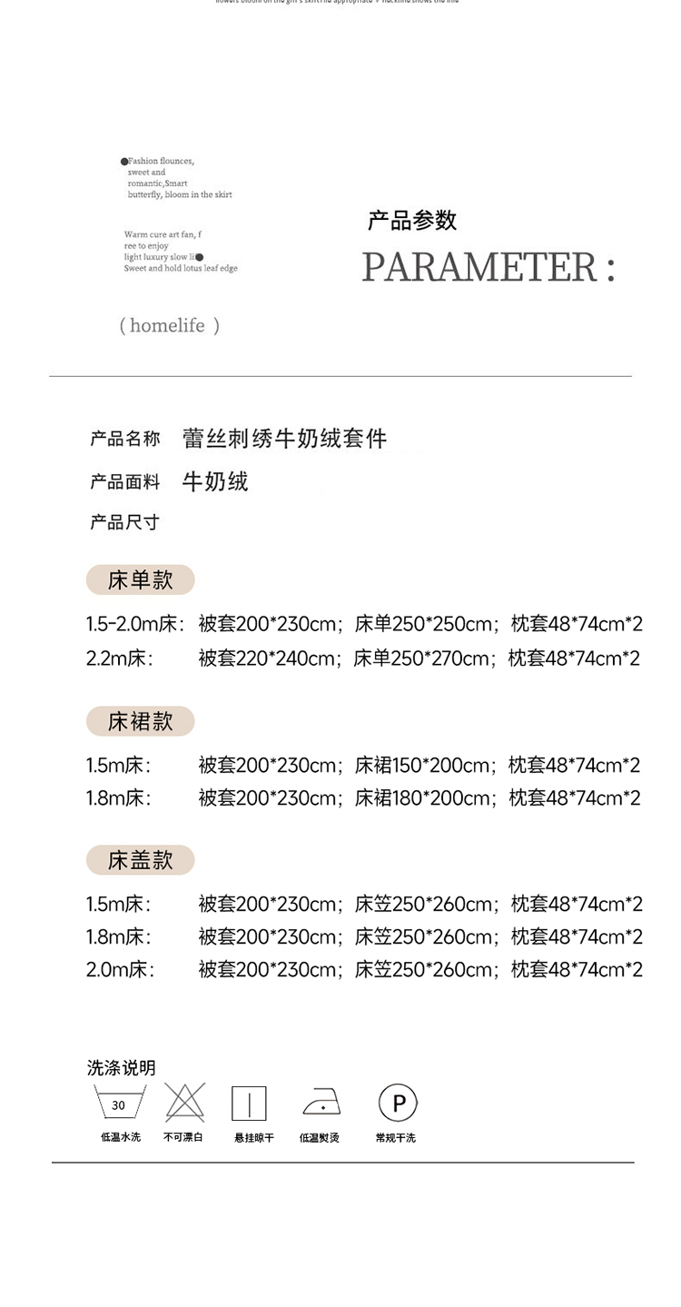 漫布云2026秋冬新款11斤230g全消光牛奶绒夹棉床盖款四件套纯色蕾丝花边刺绣床裙款床盖,蝶恋花-梦幻紫, 蝶恋花-嫩黄 ,蝶恋花-新芽绿, 蝶恋花-婴儿蓝, 蝶恋花-樱花粉