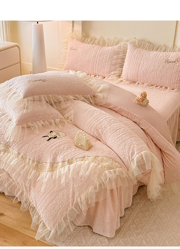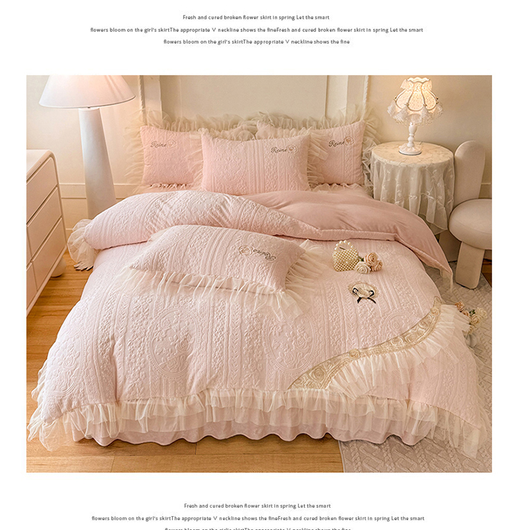 (总)漫布云 2026新款230g高克重韩版立体盘花牛奶蚕丝绒绣花四件套床裙款被套-洛丽塔系列,洛丽塔-嫩黄 ,洛丽塔-香芋紫,洛丽塔-珍珠粉, 洛丽塔-婴儿蓝