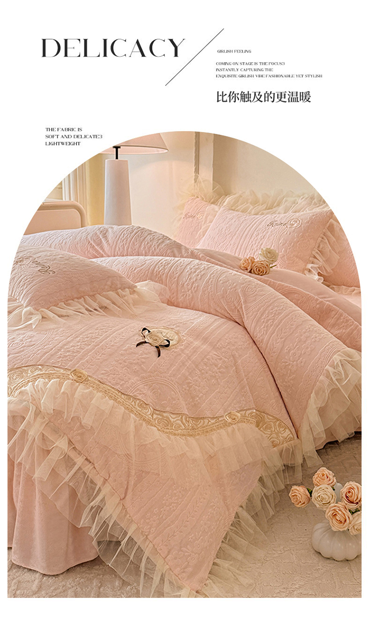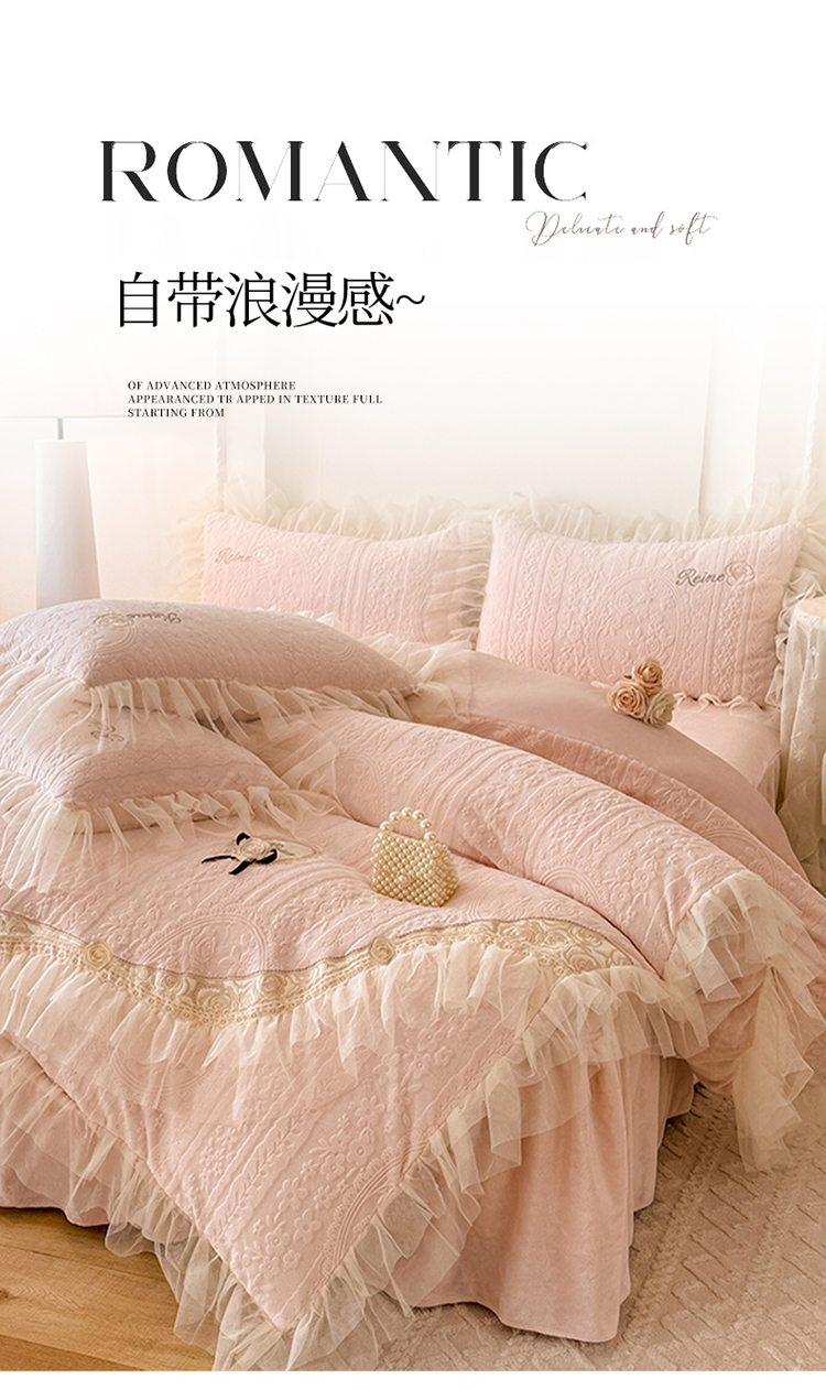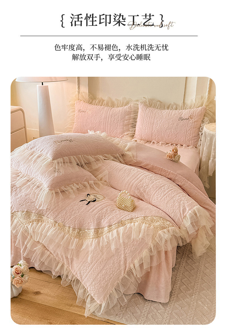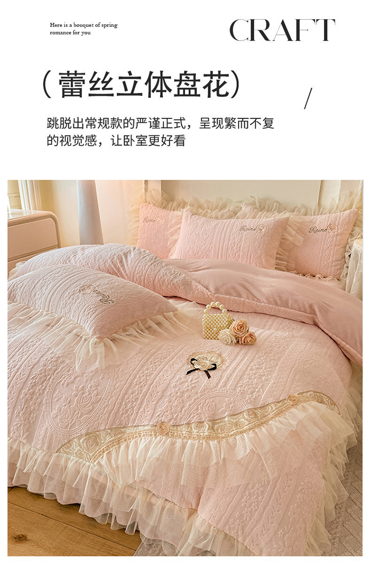 (总)漫布云 2026新款230g高克重韩版立体盘花牛奶蚕丝绒绣花四件套床裙款被套-洛丽塔系列,洛丽塔-嫩黄 ,洛丽塔-香芋紫 , 洛丽塔-珍珠粉,洛丽塔-婴儿蓝