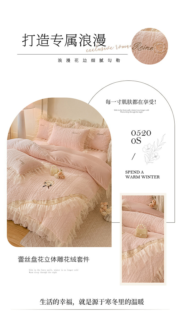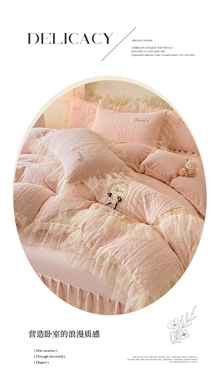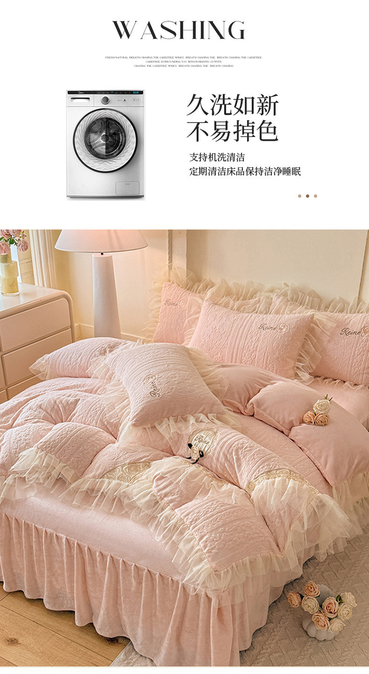 (总)漫布云 2026新款230g高克重韩版立体盘花牛奶蚕丝绒绣花四件套床裙款被套-洛丽塔系列,洛丽塔-嫩黄 ,洛丽塔-香芋紫 , 洛丽塔-珍珠粉,洛丽塔-婴儿蓝