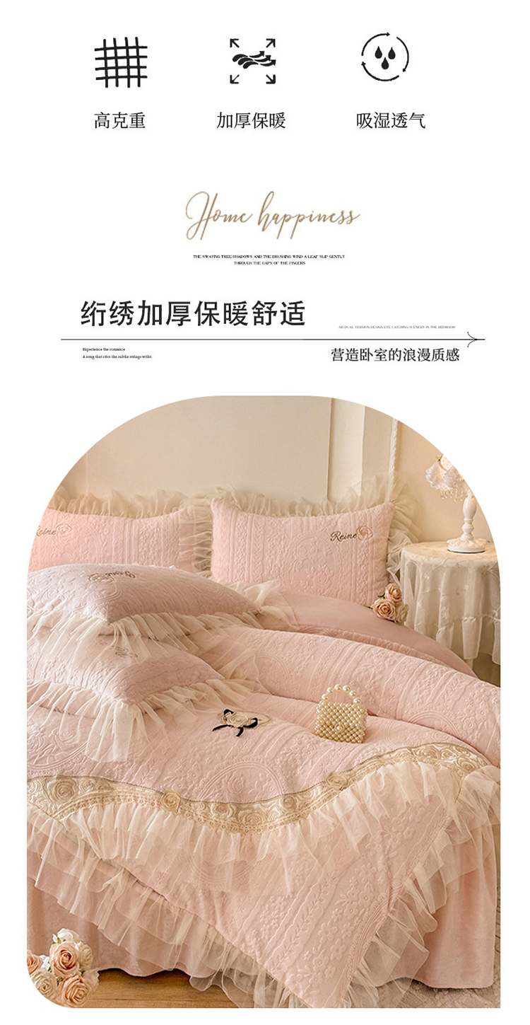 漫布云2026秋冬新款11斤230g全消光牛奶绒夹棉床盖款四件套纯色蕾丝花边刺绣床裙款床盖,蝶恋花-梦幻紫, 蝶恋花-嫩黄, 蝶恋花-新芽绿 ,蝶恋花-婴儿蓝 ,蝶恋花-樱花粉