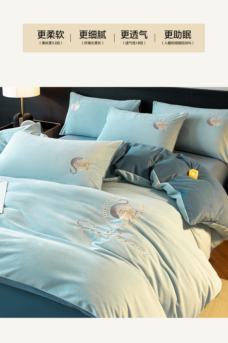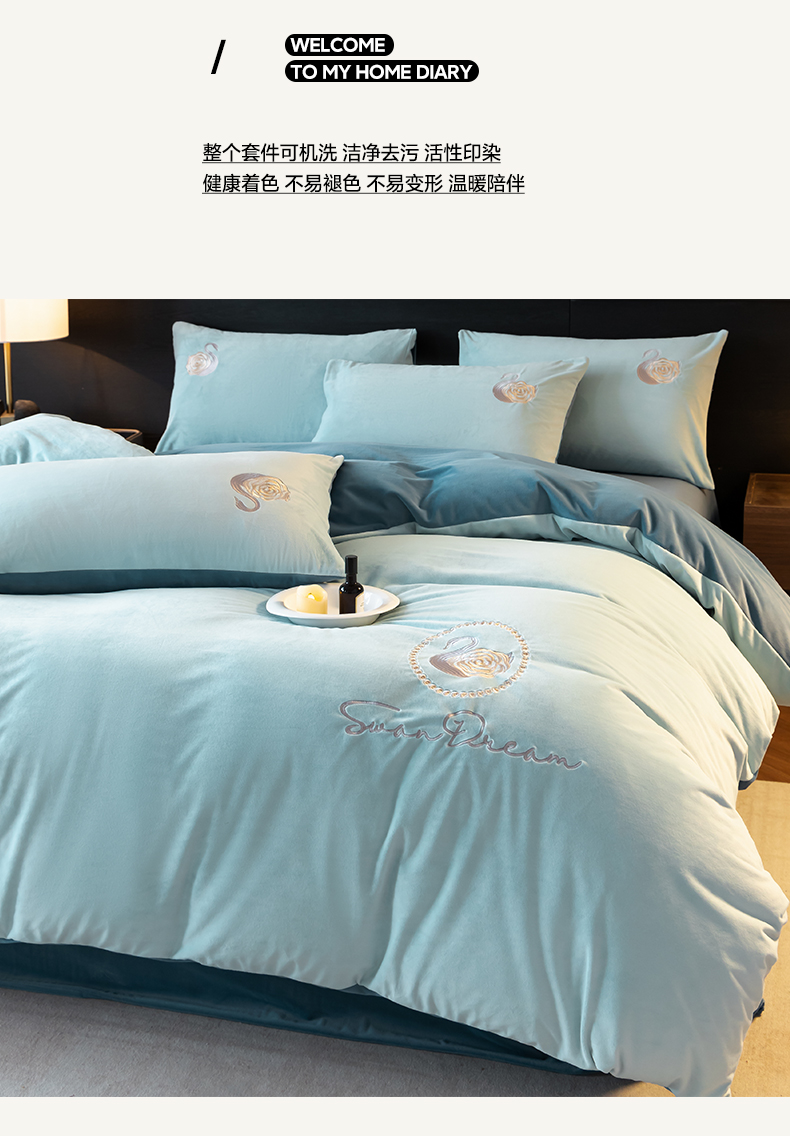 当前位置: 91家纺网 > 商品网购 > 床品套件 > 四件套 > 水晶绒四件套 > 如一 2025新款水晶绒双拼刺绣四件套-天鹅 天鹅-梵星兰