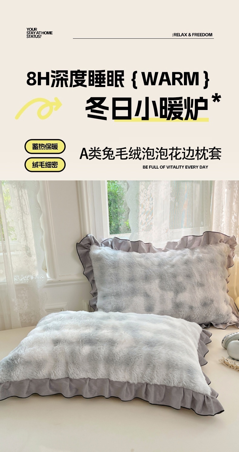 • 91家纺网 家纺一手货源 找家纺 梦舒羽 2025新款兔毛绒单人枕套牛奶绒枕芯套雪花绒宿舍枕头套-泡泡 兔毛绒泡泡花边款-梦幻浅灰