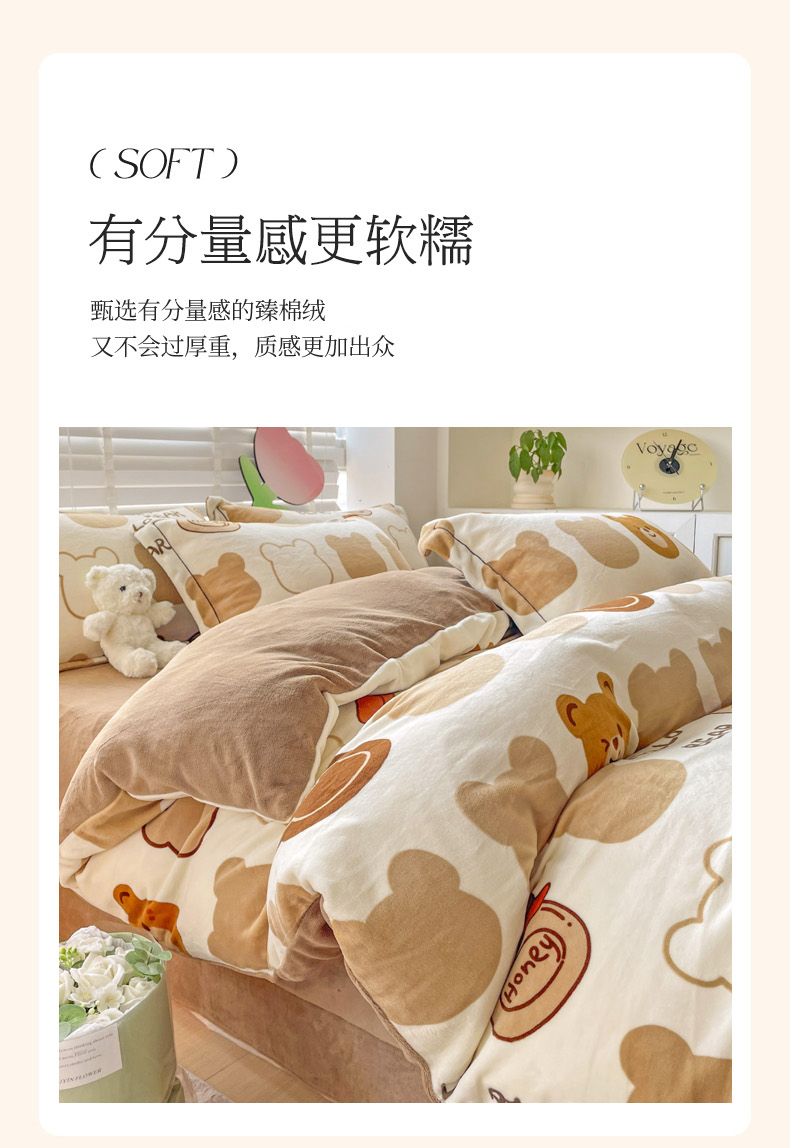 商品名称:丽涵家纺 2025秋冬新品230克全工艺消光牛奶绒印花四件套 维奥熊