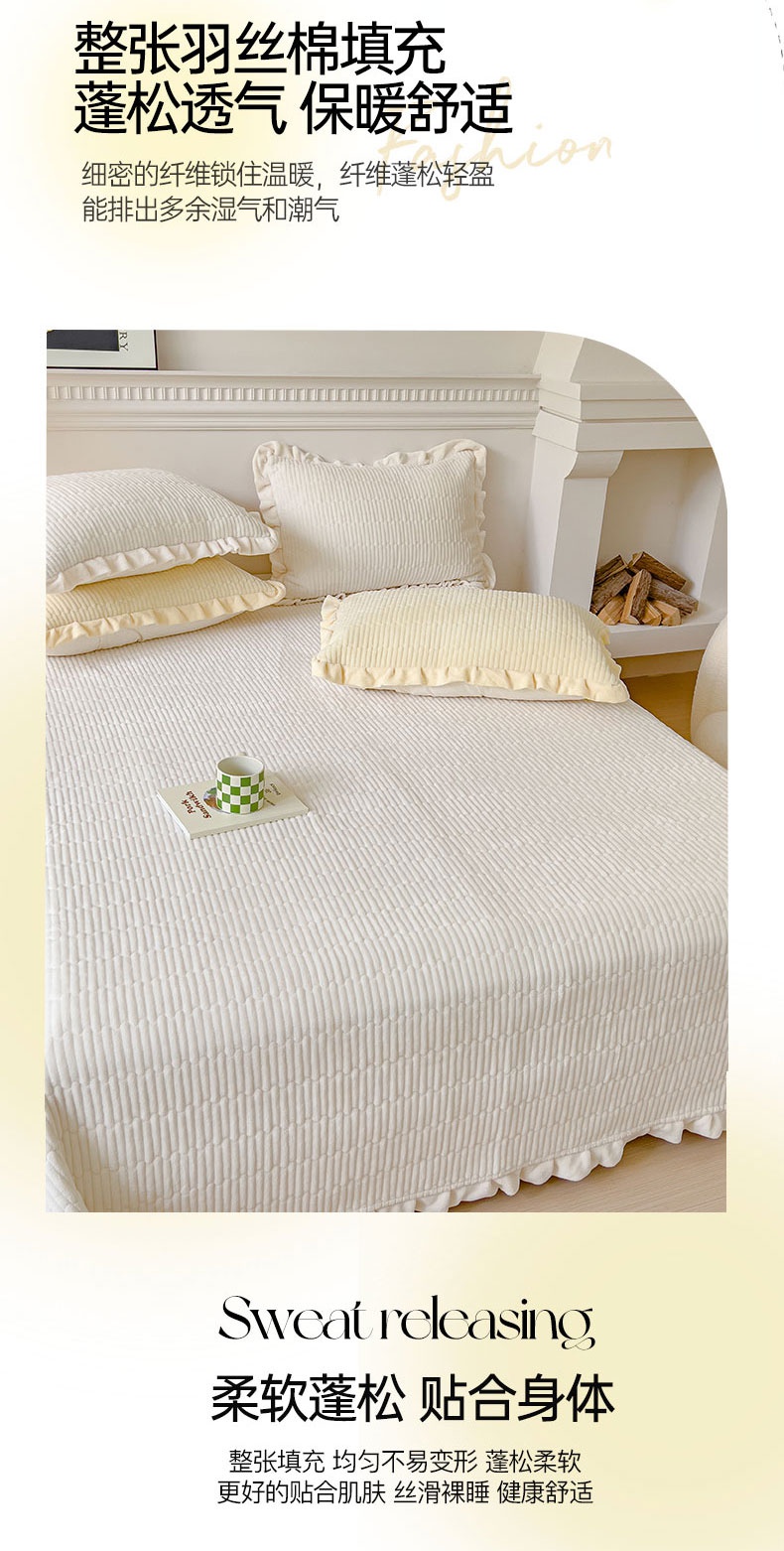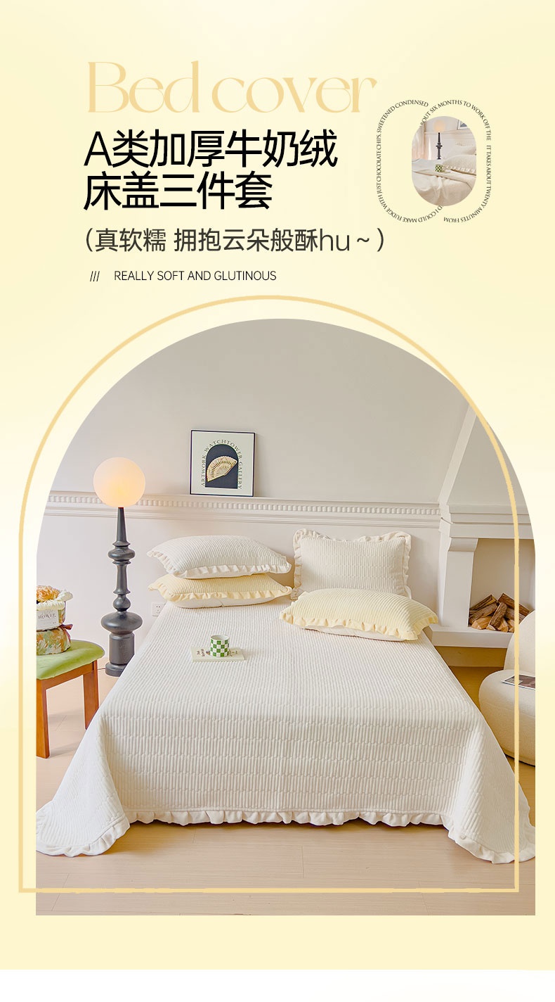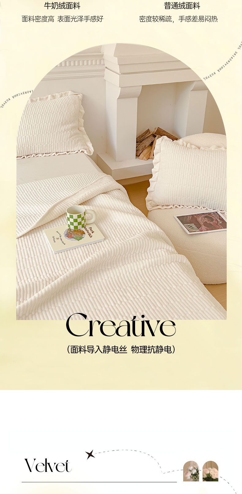 乐野家居 2025新款A类加厚素色牛奶绒床盖系列 珍珠白