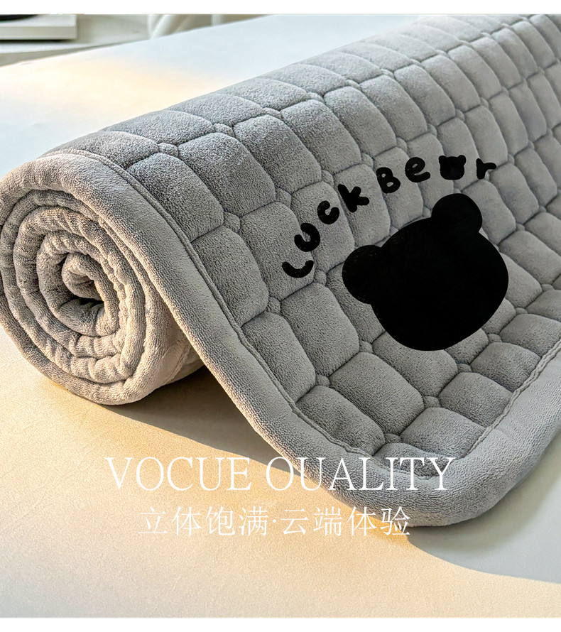 (总)喜居 2025新款luck熊牛奶绒床垫床褥子床护垫,LUCK熊-粉,LUCK熊-灰,LUCK熊-咖,LUCK熊-蓝,LUCK熊-绿,LUCK熊-紫,组合图